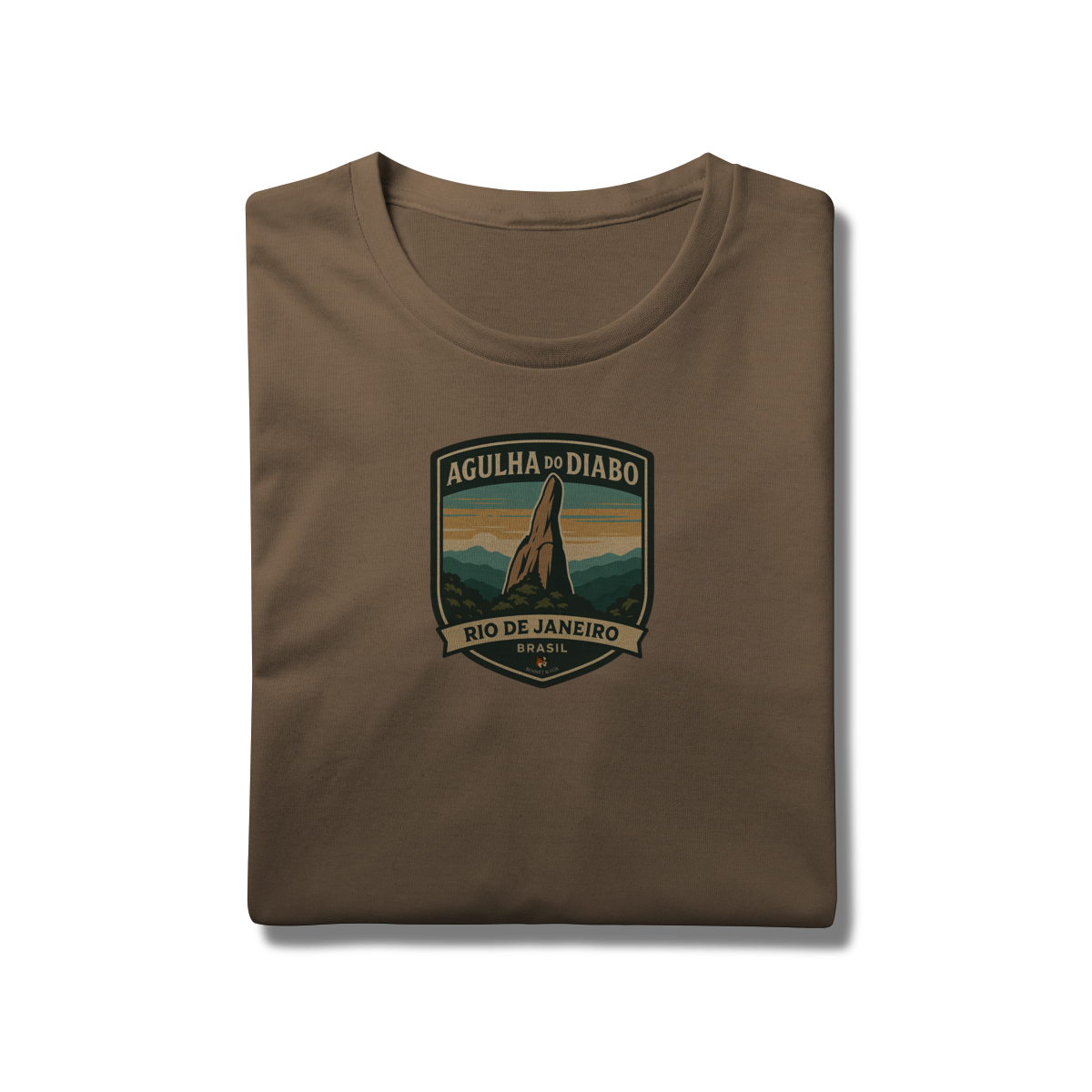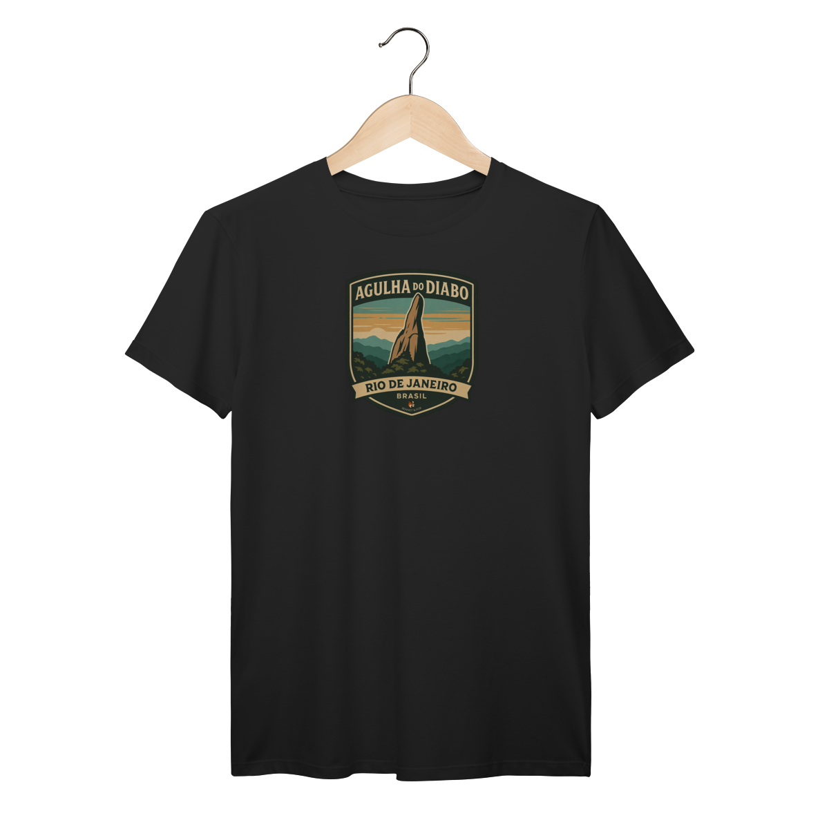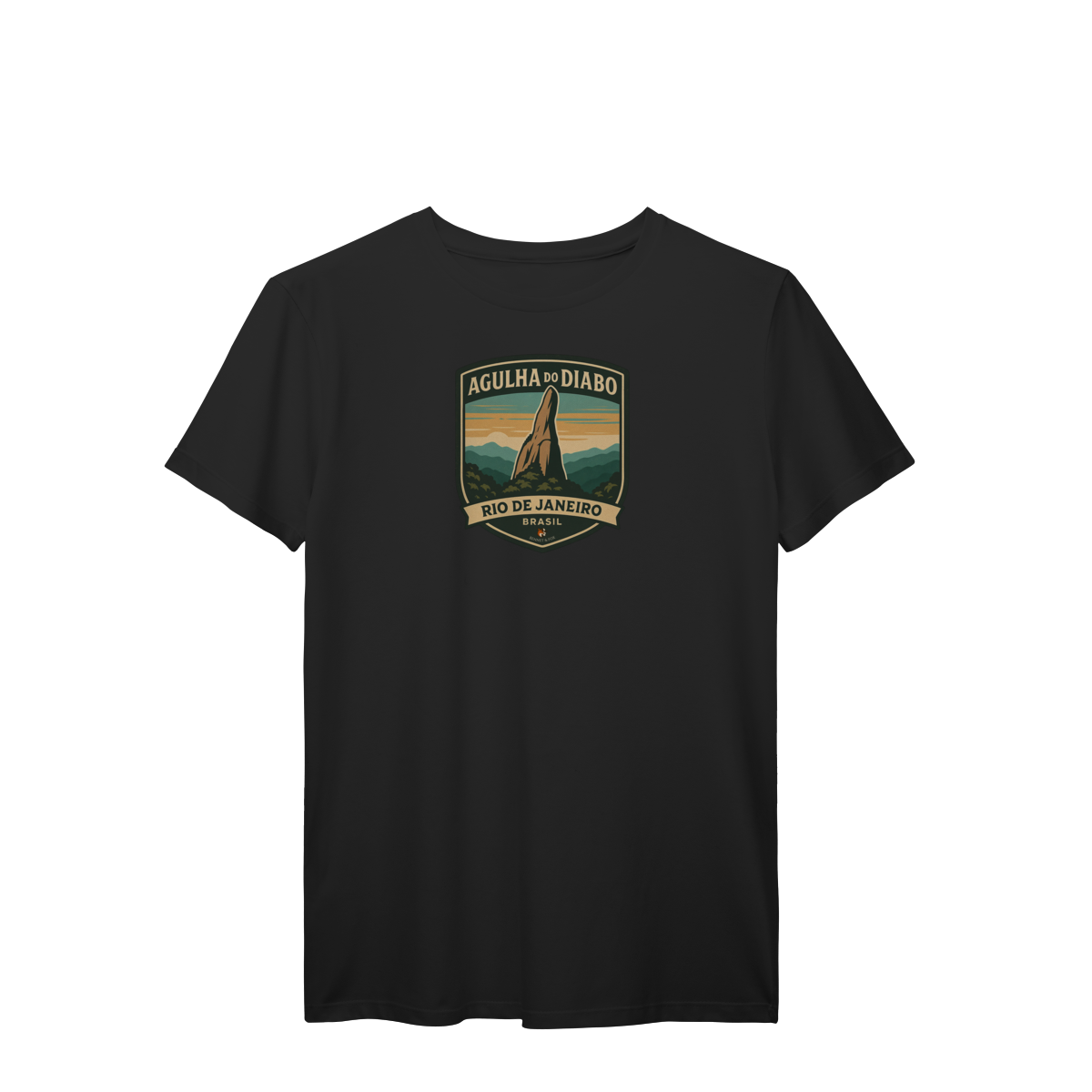 • Design Icônico: Uma estampa que retrata a silhueta singular e imponente da Agulha do Diabo, um verdadeiro troféu para os montanhistas.