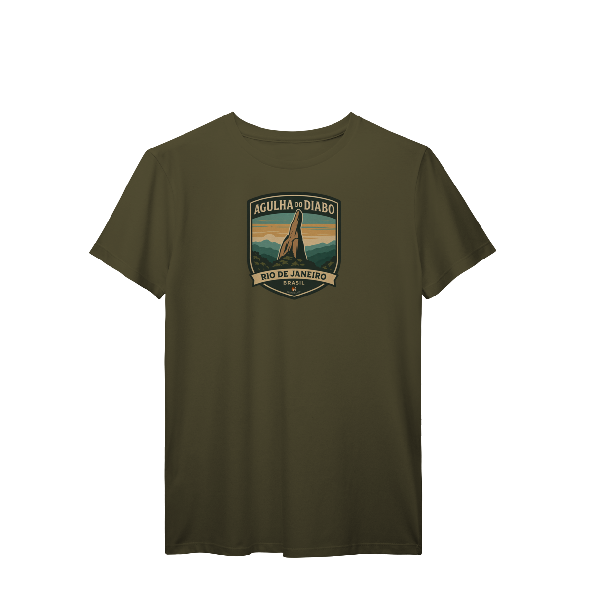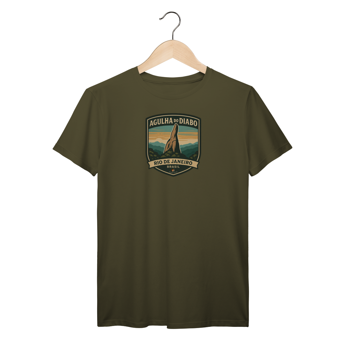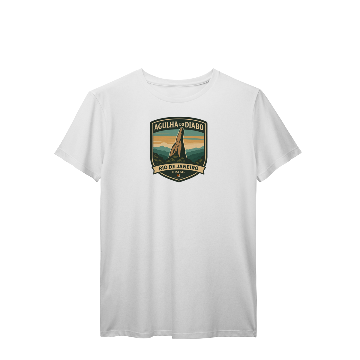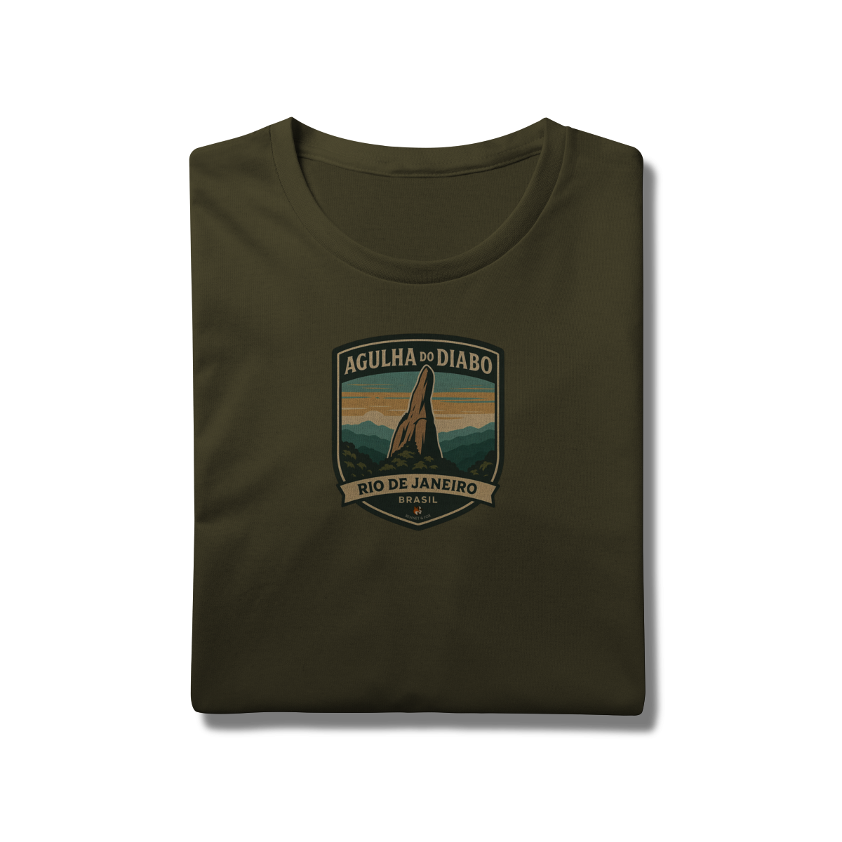 • Design Icônico: Uma estampa que retrata a silhueta singular e imponente da Agulha do Diabo, um verdadeiro troféu para os montanhistas.