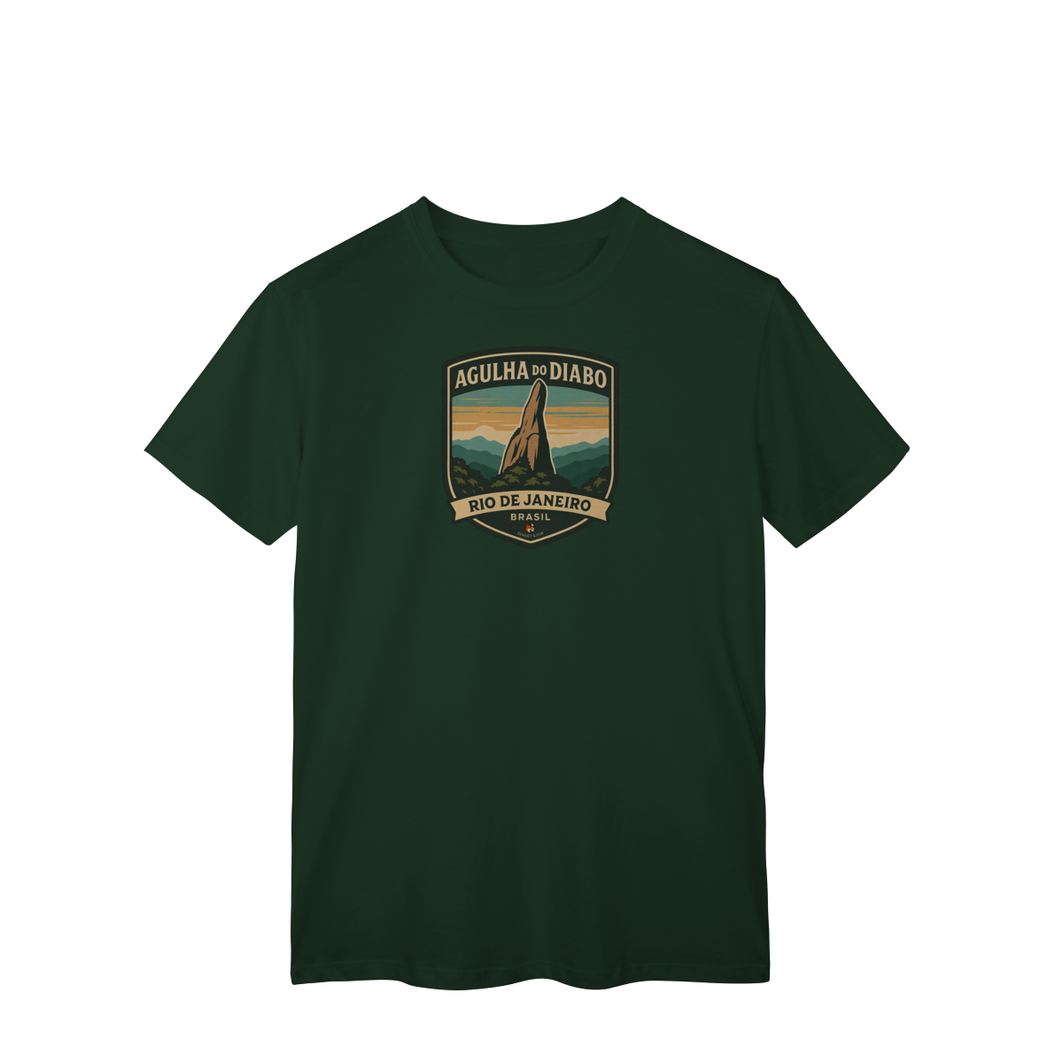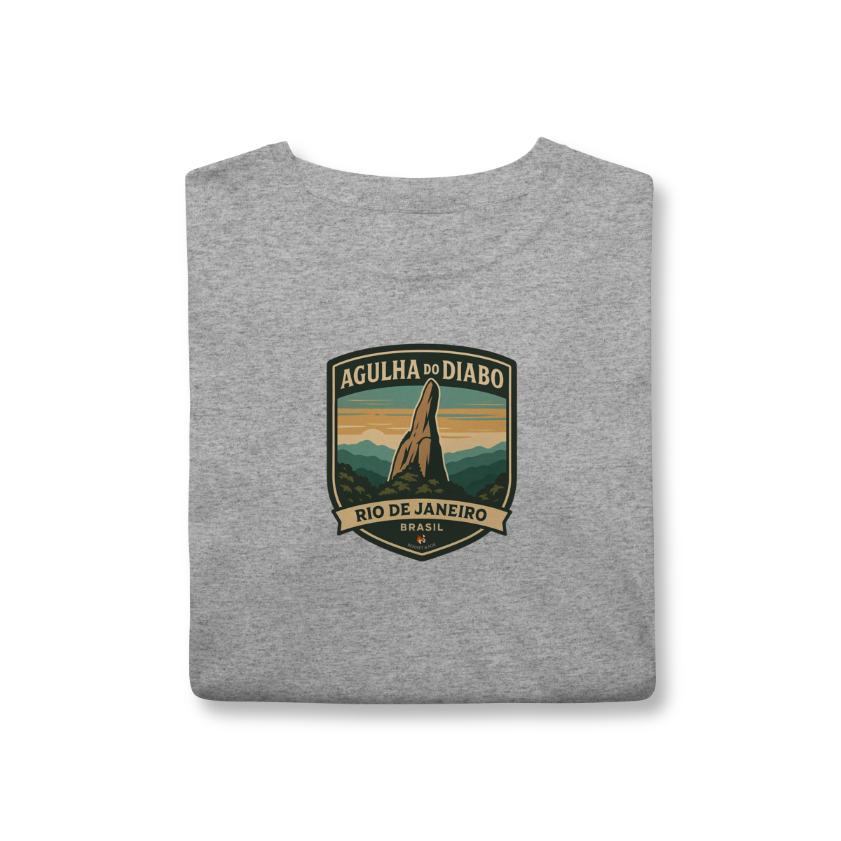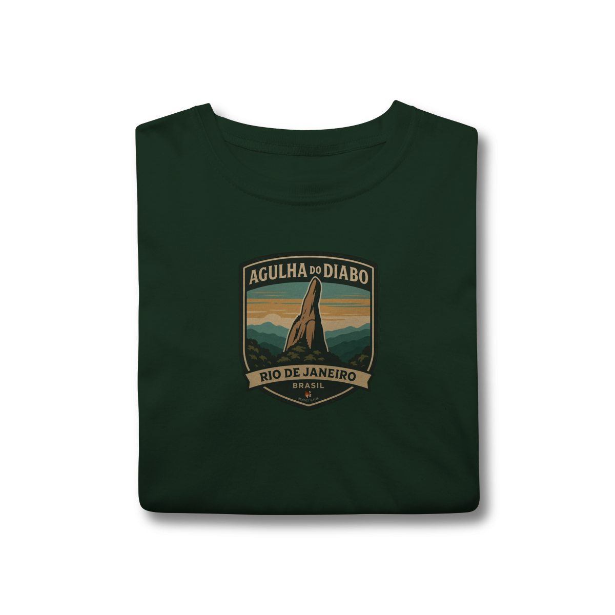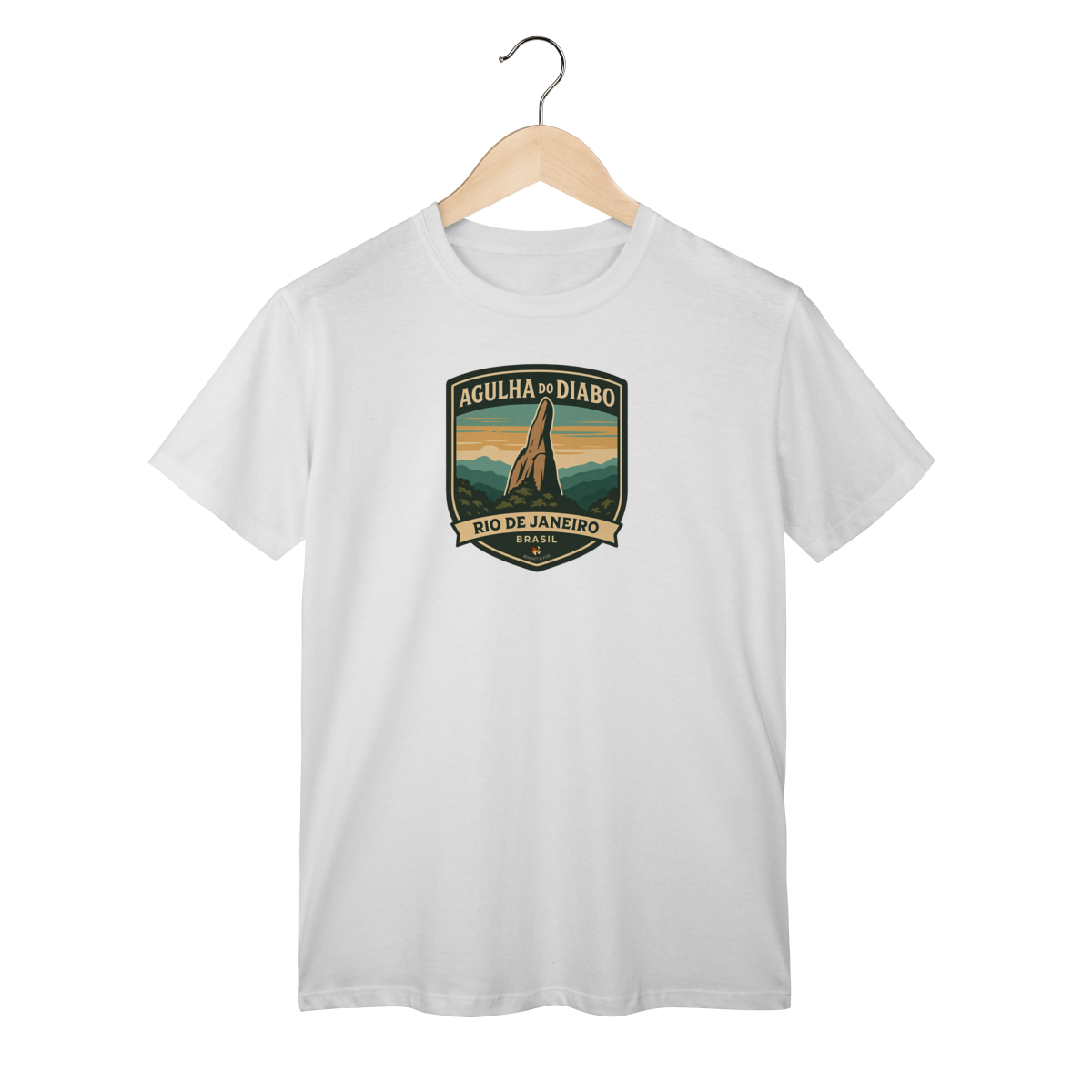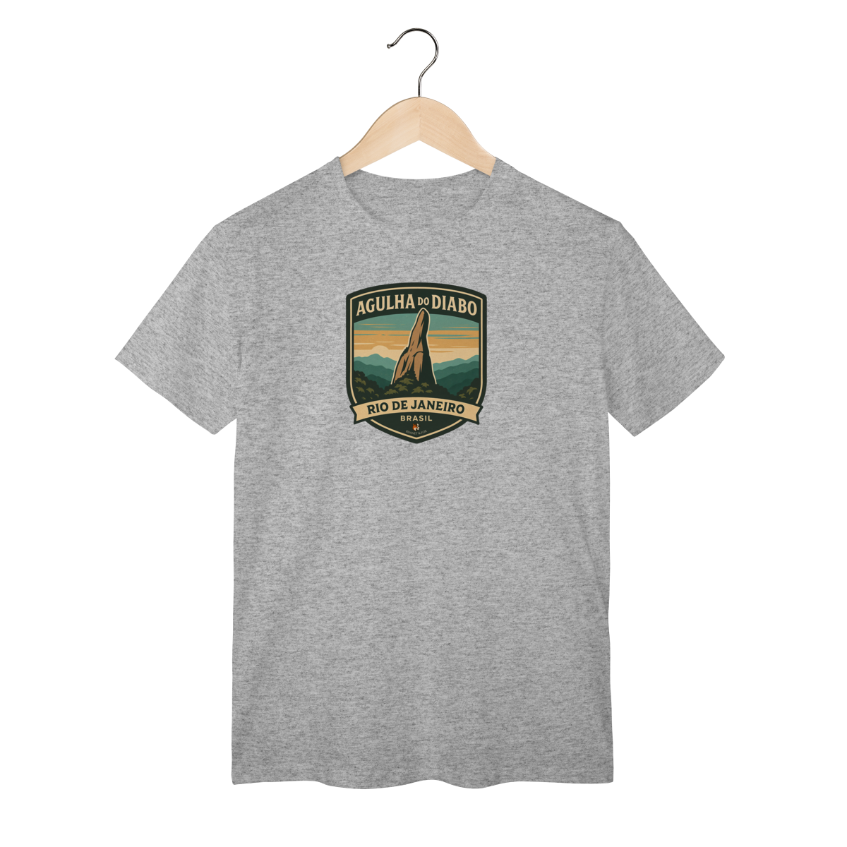 • Design Icônico: Uma estampa que retrata a silhueta singular e imponente da Agulha do Diabo, um verdadeiro troféu para os montanhistas.