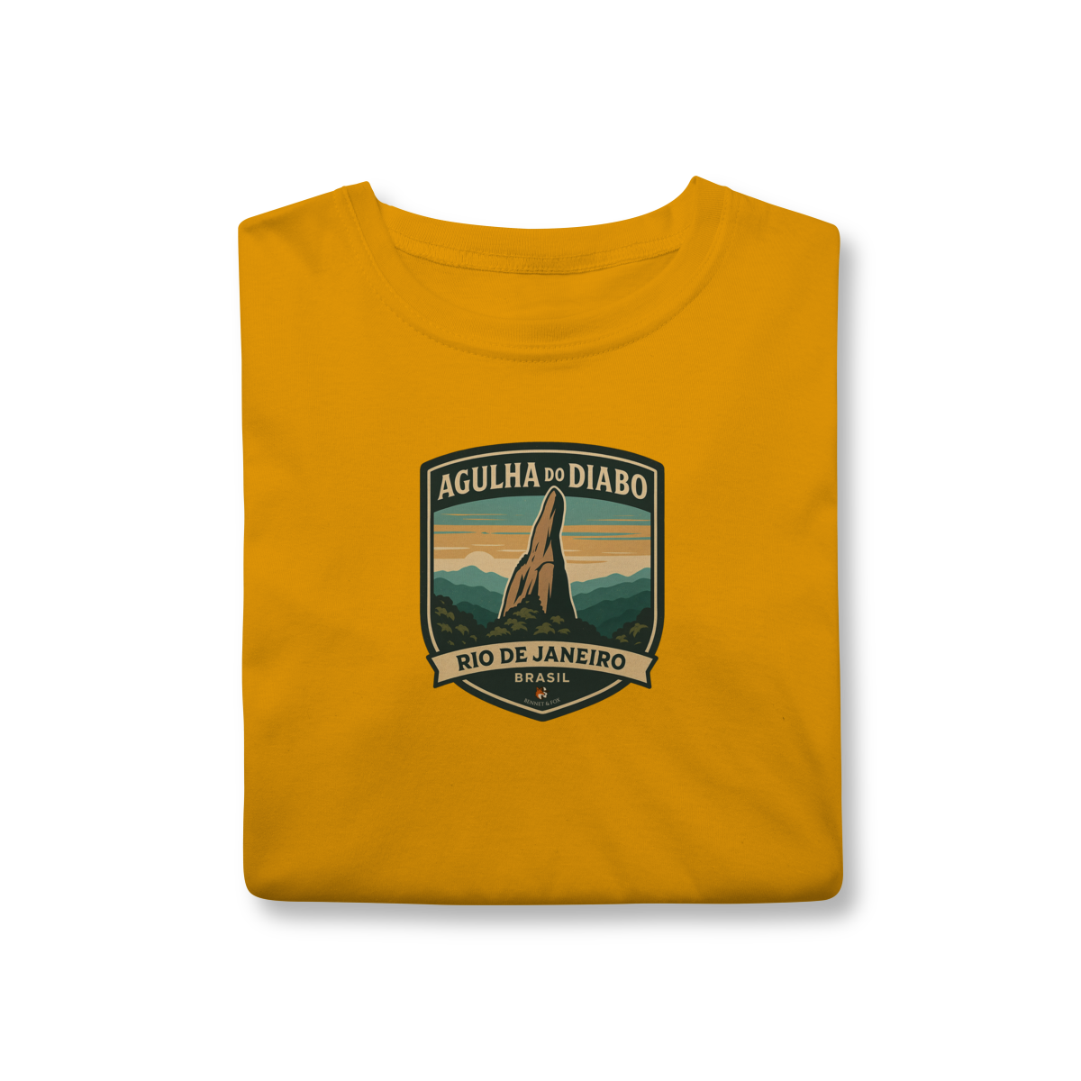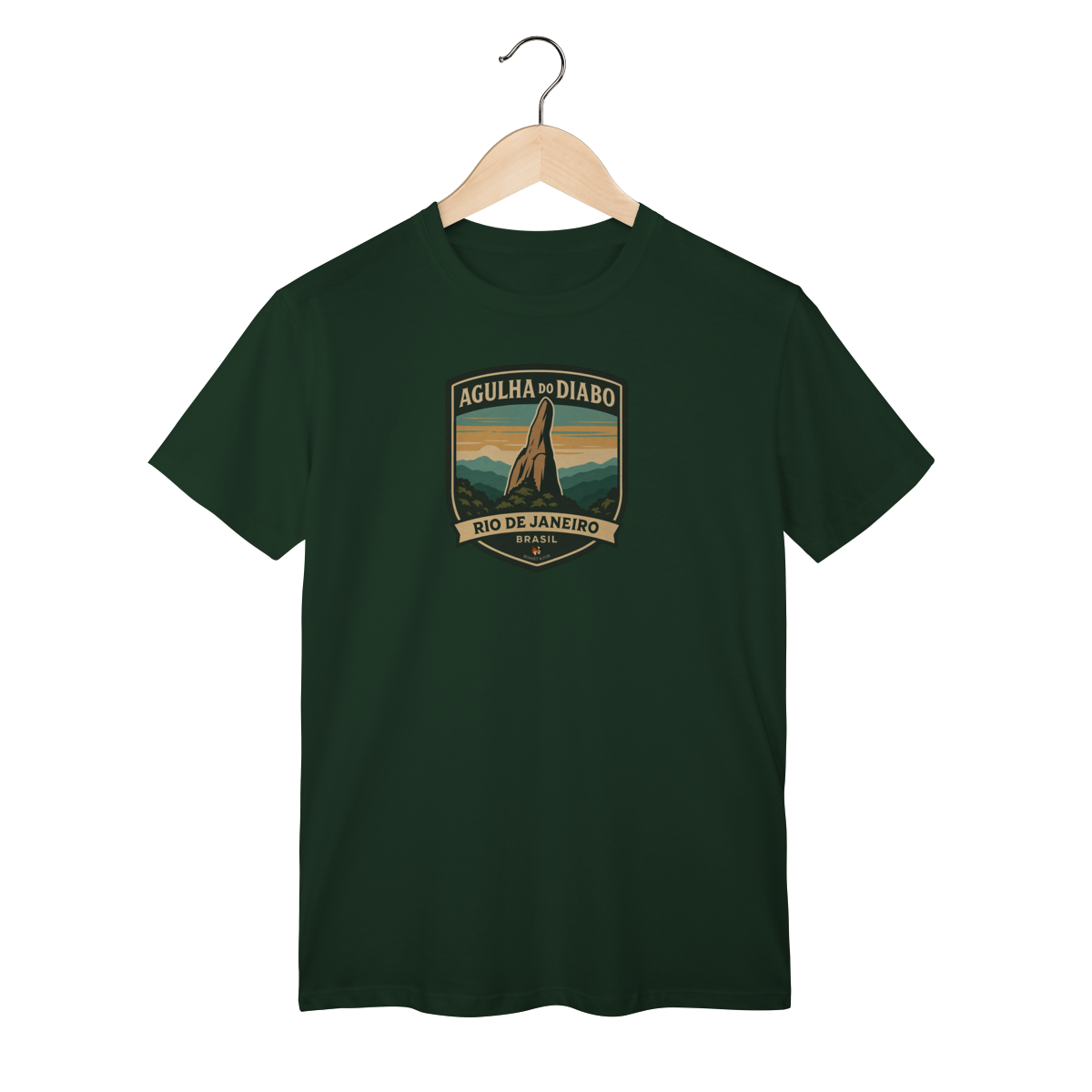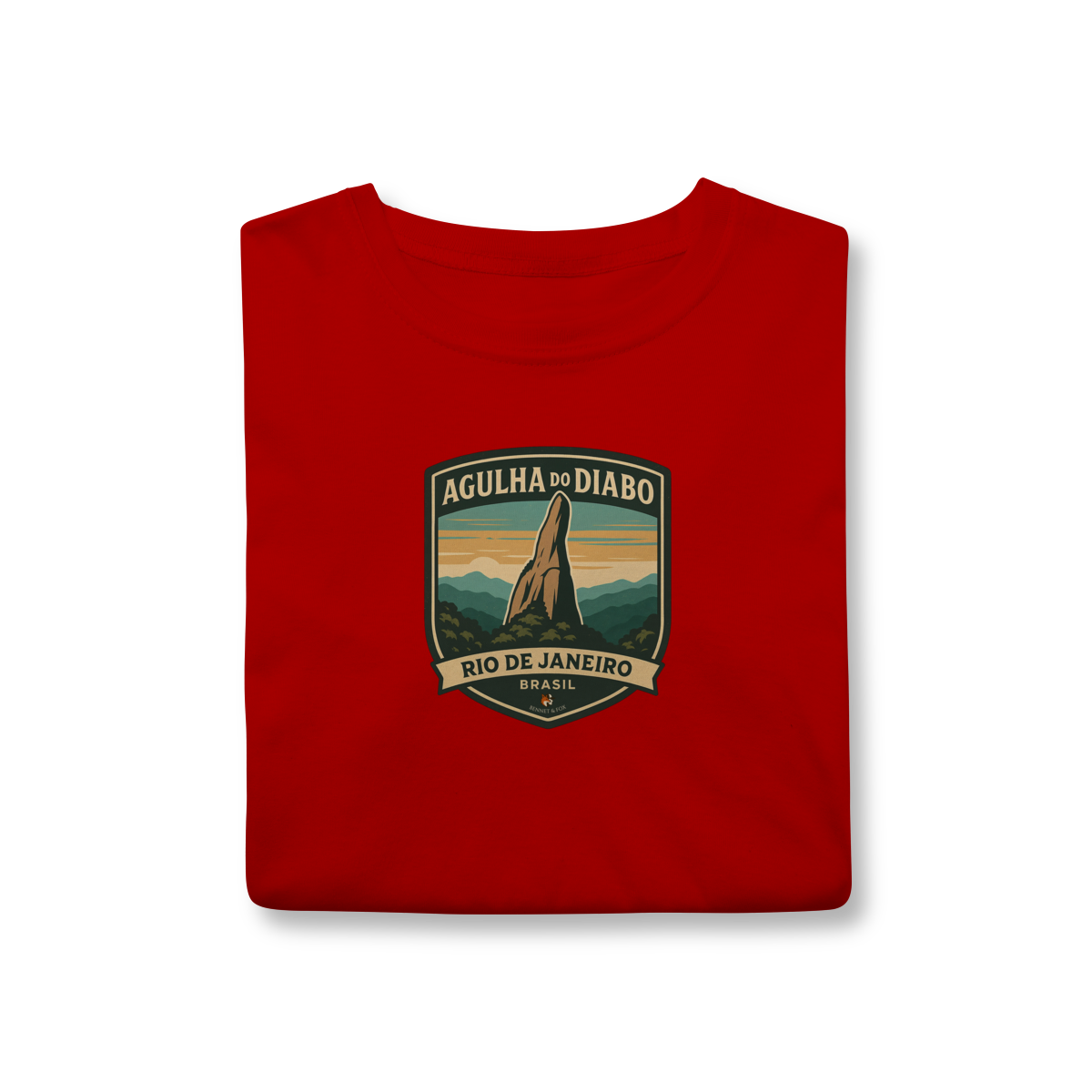 Localizada no coração da Serra dos Órgãos, no estado do Rio de Janeiro, a Agulha do Diabo não é para qualquer um. Sua conquista é um rito de passagem para muitos escaladores, uma jornada que exige técnica, coragem e um profundo respeito pela montanha. Nossa estampa foi criada para honrar essa lenda: o formato desafiador da agulha, a beleza selvagem do parque ao redor e o espírito das conquistas clássicas.