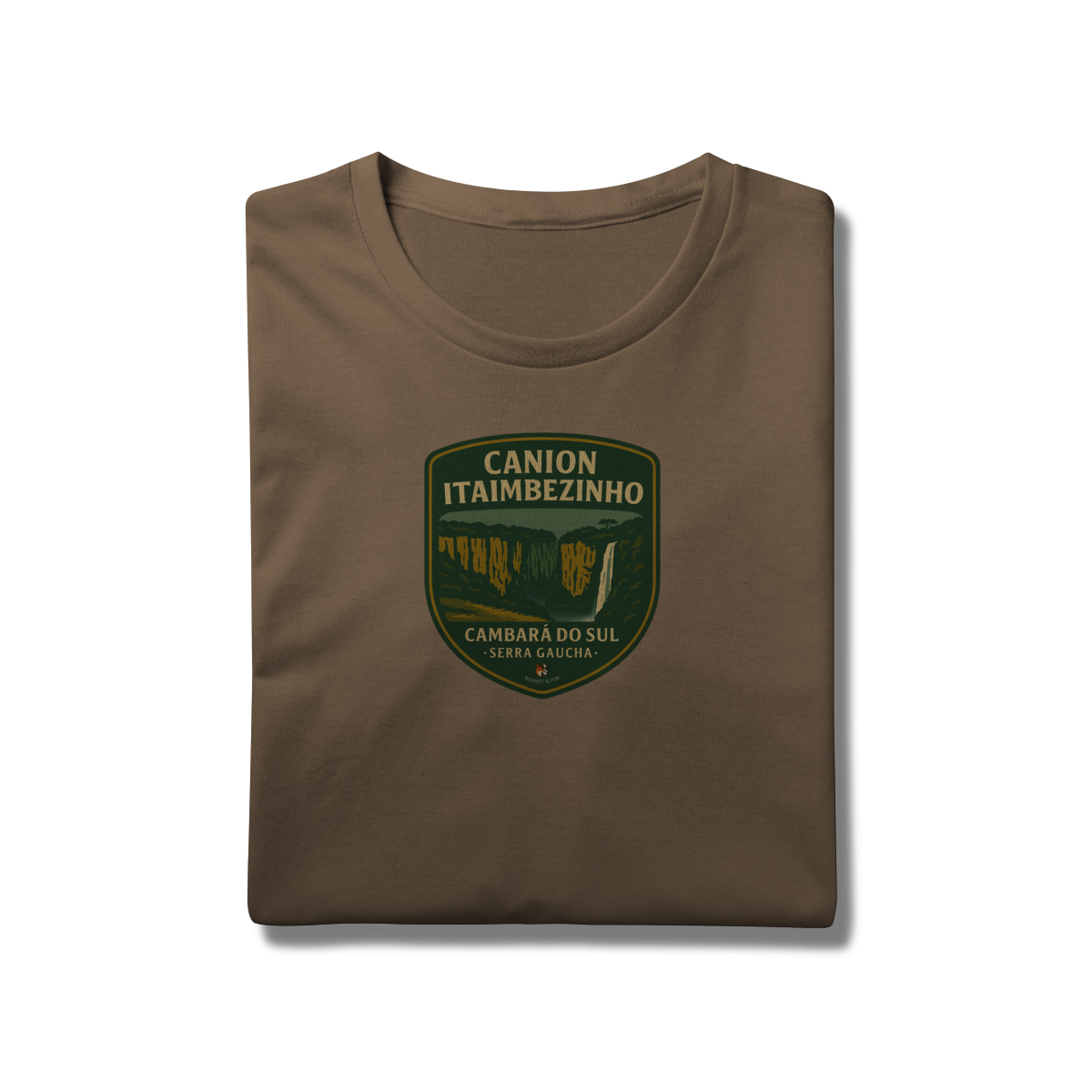 O Cânion Itaimbezinho é um gigante adormecido em Cambará do Sul. É a trilha que leva à beirada do abismo, o voo do gavião-peneira e o som distante das cachoeiras que se formam nas profundezas. Nossa estampa foi criada para capturar essa emoção: a imensidão do vale, a força da natureza e a sensação de estar diante de algo verdadeiramente monumental.