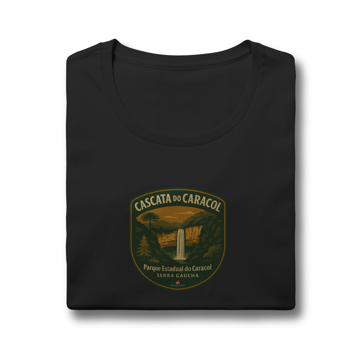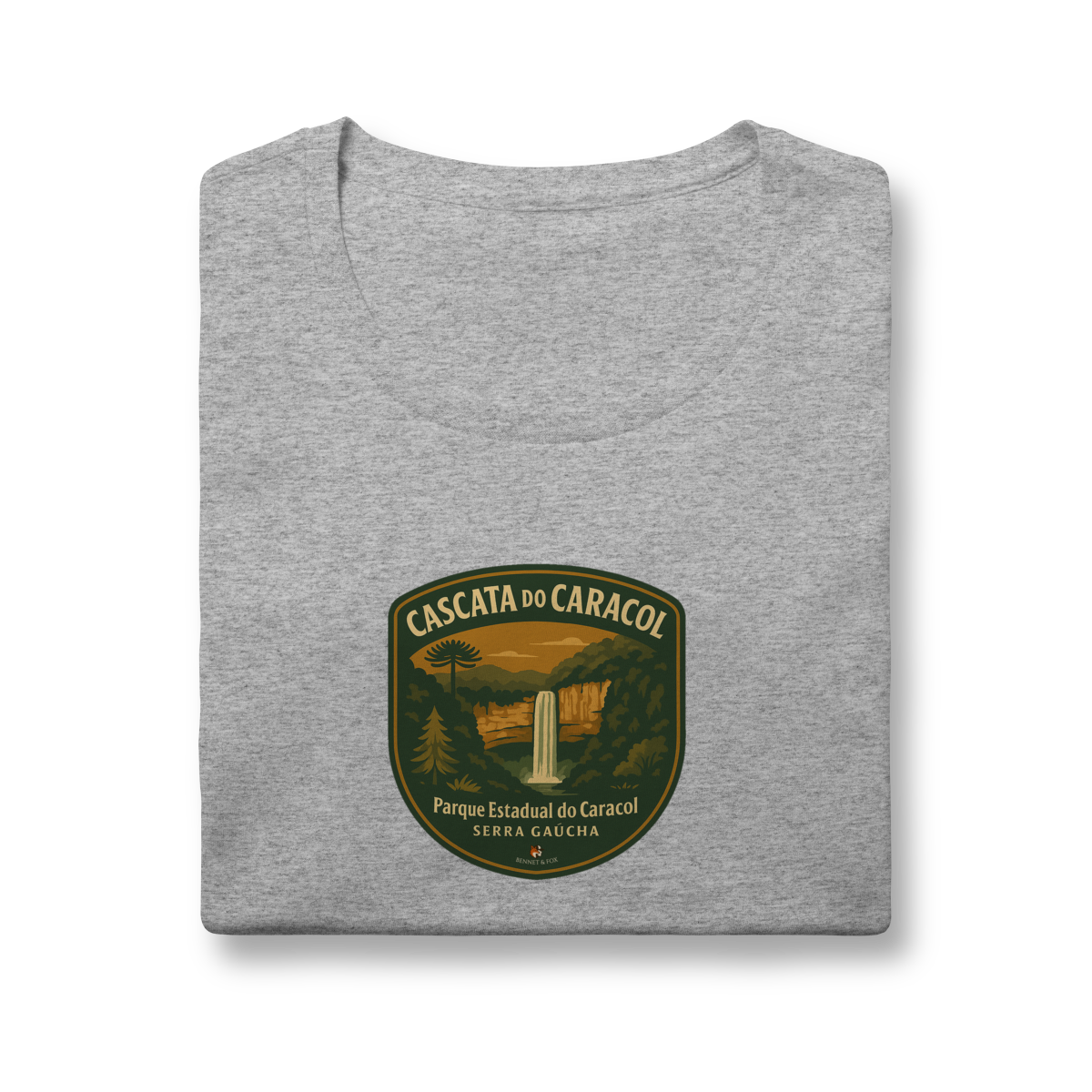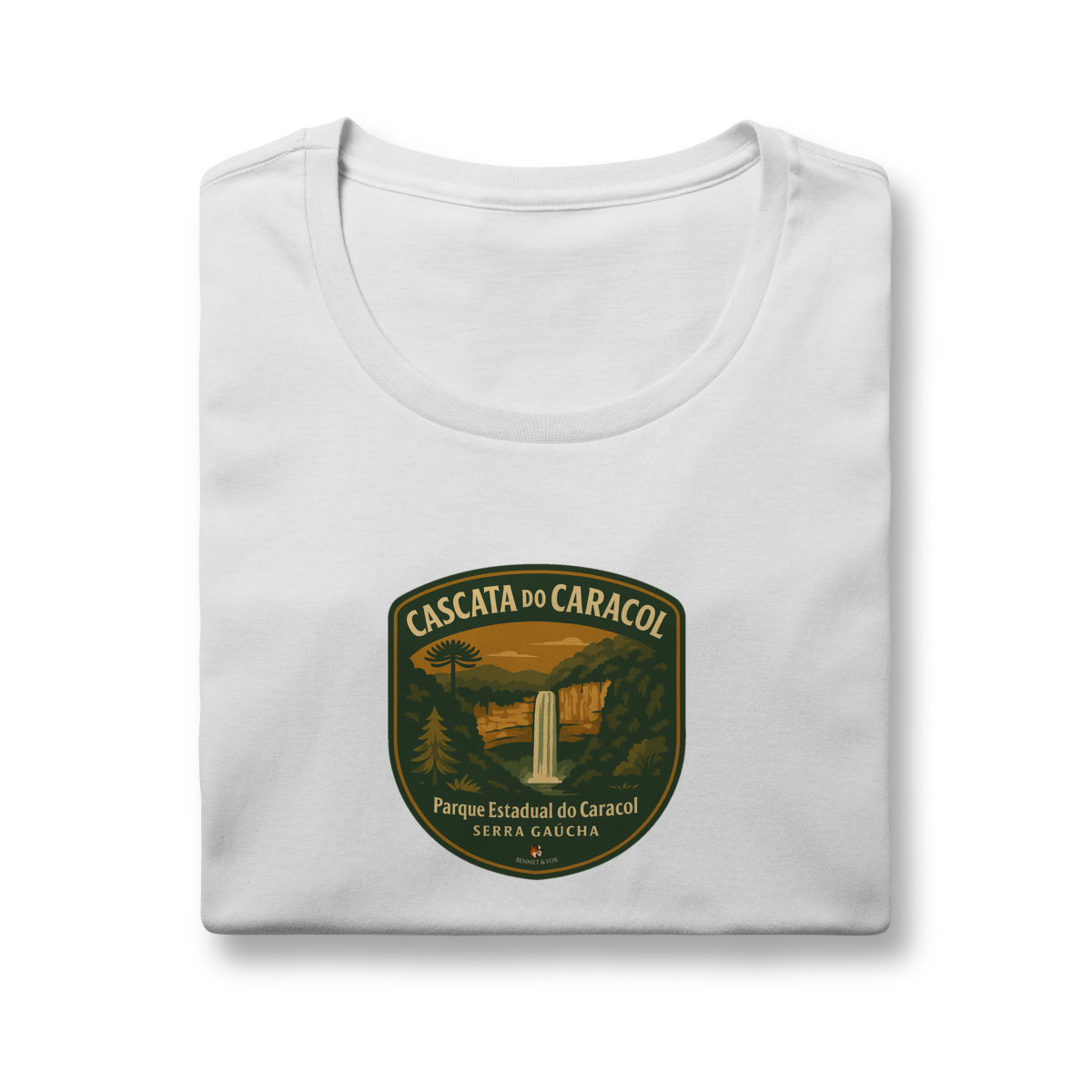 Se você busca pela camiseta feminina da Cascata do Caracol, encontrou a peça que une aventura e um caimento perfeito. Esta edição Aventureira feminina da Bennet & Fox foi desenhada especialmente para a mulher que explora, confeccionada em malha premium de 100% algodão penteado fio 30.1.