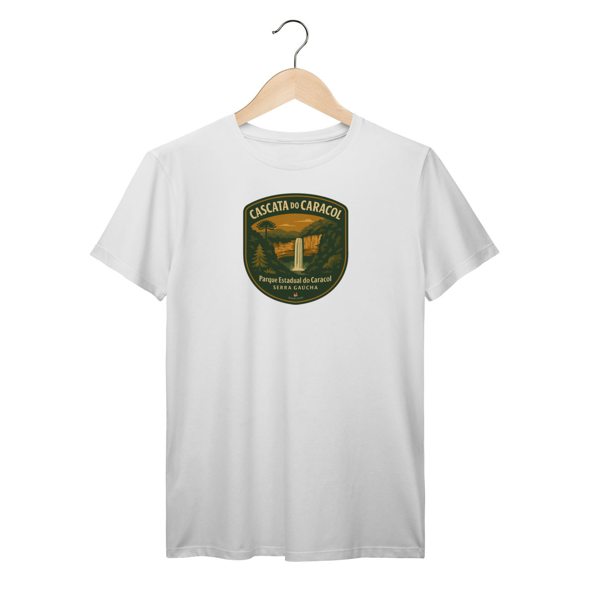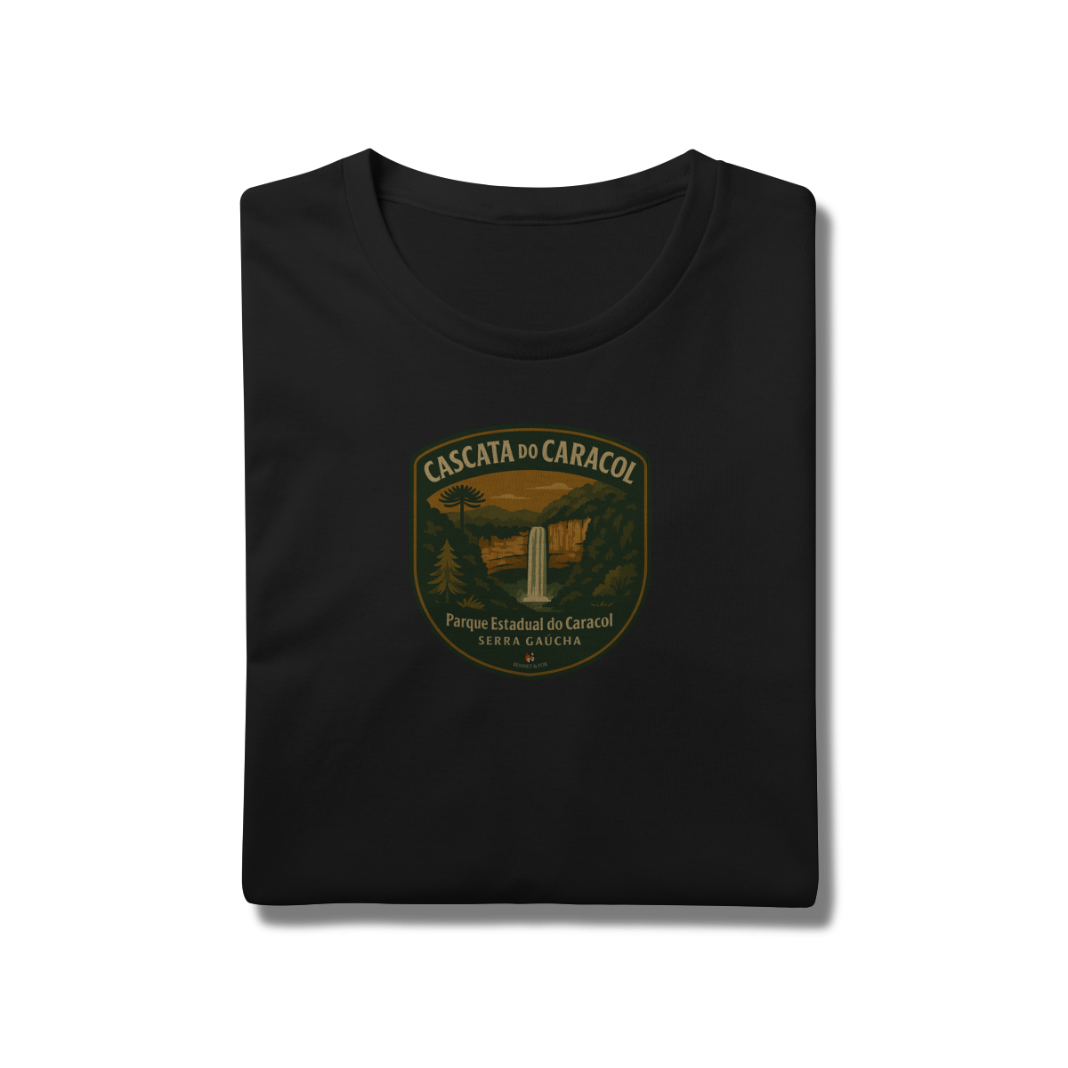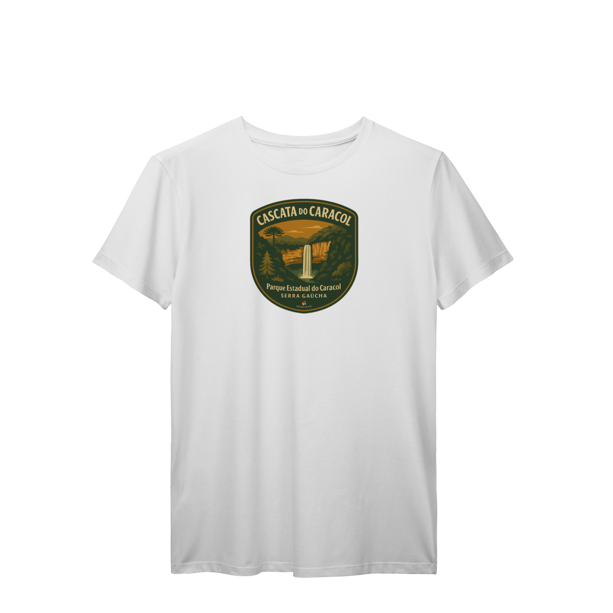 Se você busca pela camiseta da Cascata do Caracol em sua versão definitiva, a encontrou. Esta edição Prime masculina da Bennet & Fox é uma homenagem à força da natureza na Serra Gaúcha, confeccionada em malha premium ultra macia de 100% algodão penteado fio 30.1.