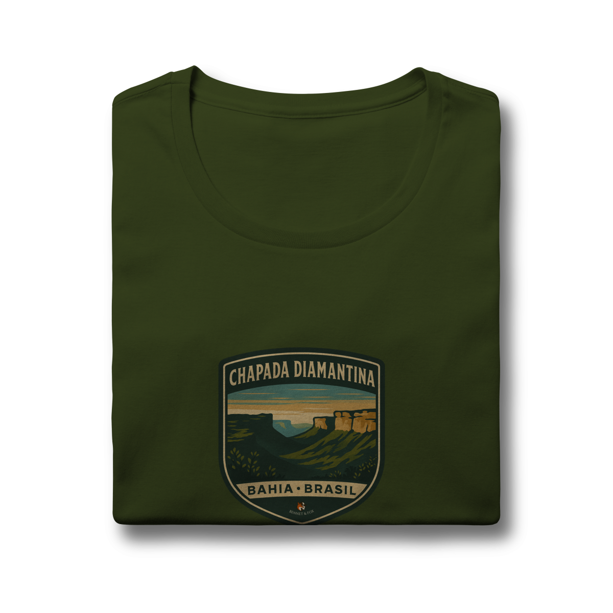 • Design de Exploração: Uma estampa que retrata a paisagem icônica da Chapada, com seus morros tabulares e a flora única do sertão baiano, em um autêntico estilo vintage.