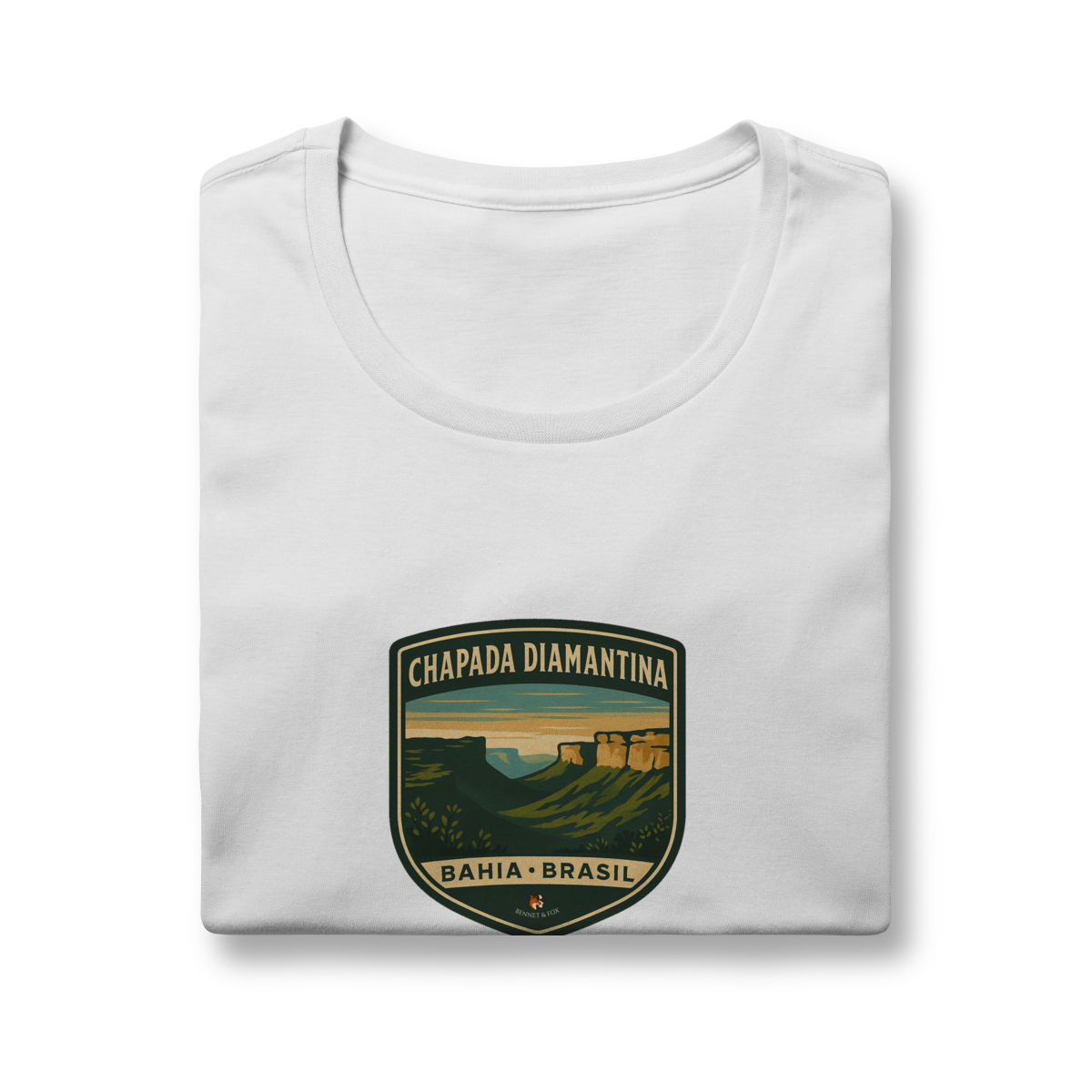 Se você busca pela camiseta feminina da Chapada Diamantina, encontrou a peça que une o coração da aventura no Brasil a um caimento perfeito. Esta edição Aventureira feminina da Bennet & Fox foi desenhada especialmente para a mulher que explora, confeccionada em malha premium de 100% algodão penteado.