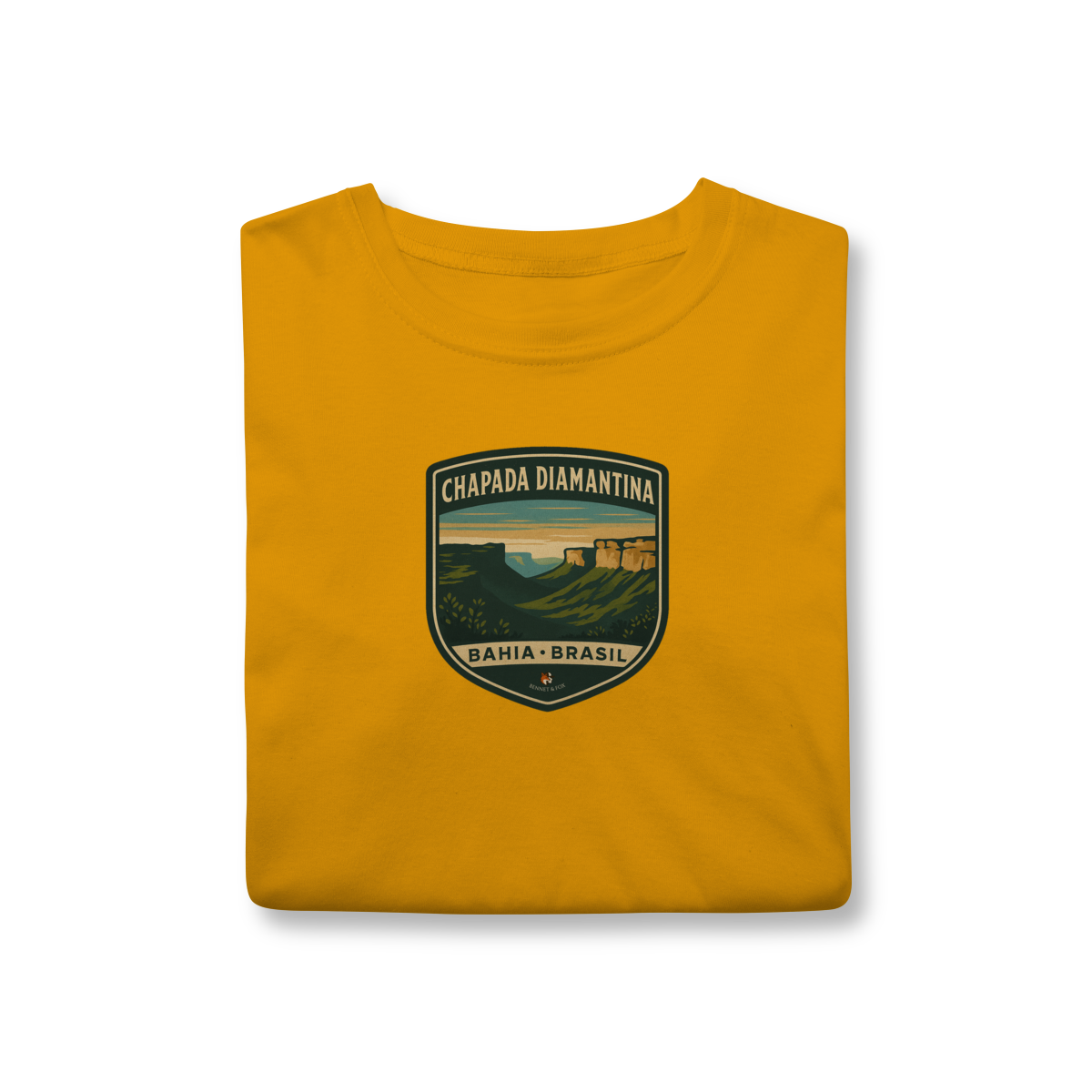 • Design de Exploração: Uma estampa que retrata a paisagem icônica da Chapada, com seus morros tabulares e a flora única do sertão baiano, em um autêntico estilo vintage.