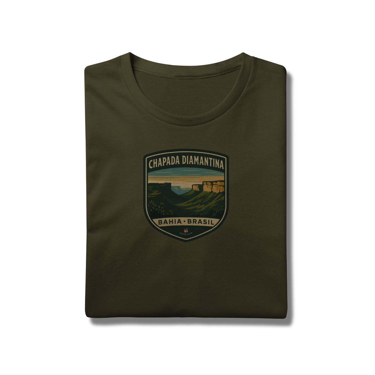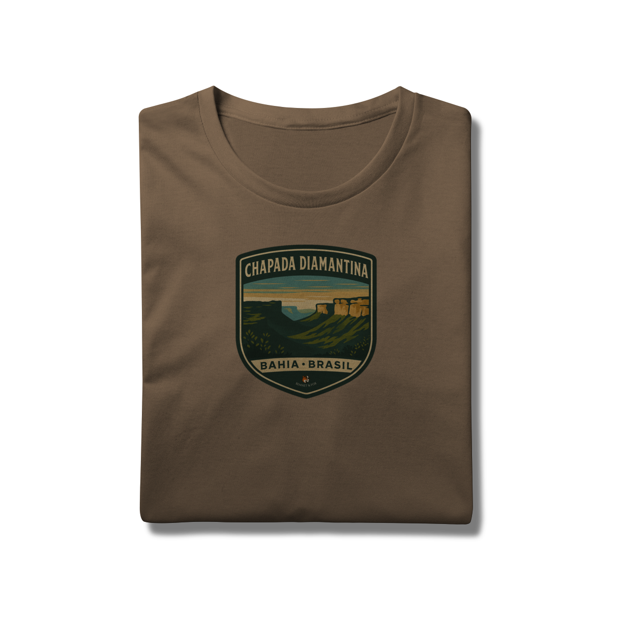 • Design de Exploração: Uma estampa que retrata a paisagem icônica da Chapada, com seus morros tabulares e a flora única do sertão baiano, em um autêntico estilo vintage.