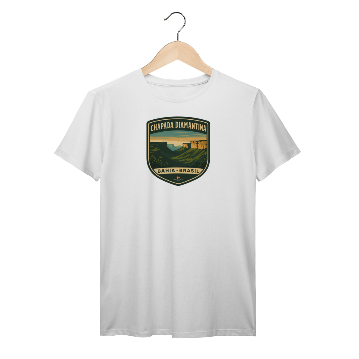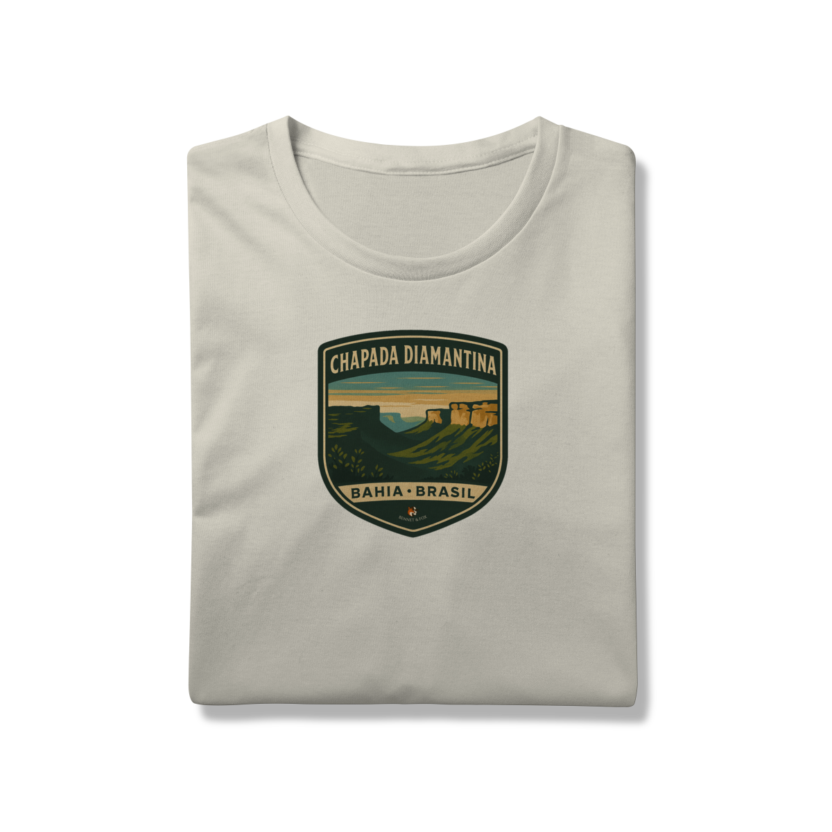 A Chapada Diamantina é uma terra de histórias. Foi o eldorado dos diamantes e hoje é o paraíso dos aventureiros. É percorrer o Vale do Pati, sentir a energia do Morro do Pai Inácio ao pôr do sol e se banhar nas águas escuras do Poço Azul. Nossa estampa foi criada para honrar essa herança: a silhueta inconfundível dos platôs, a história dos garimpeiros e o espírito de descoberta que pulsa em cada trilha.
