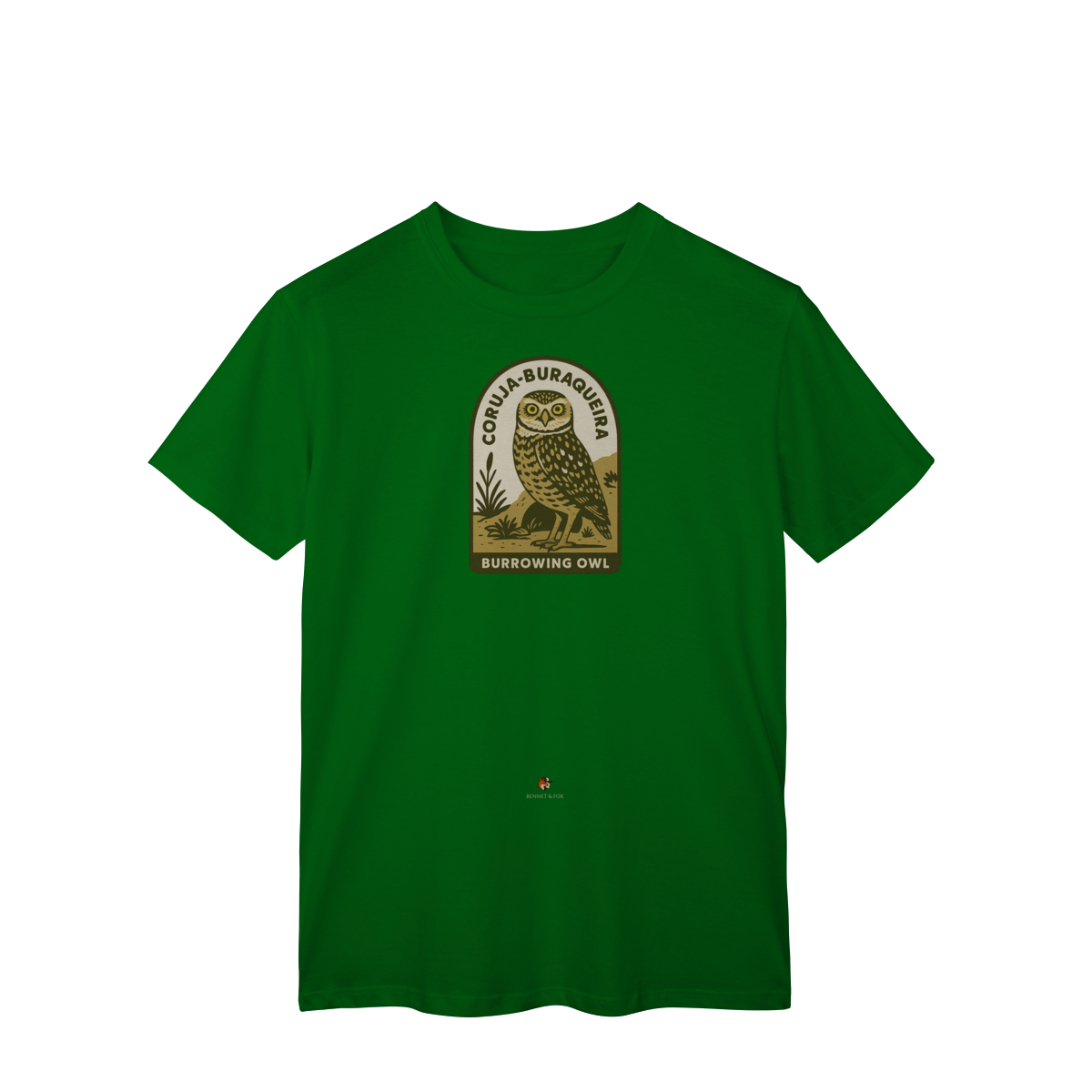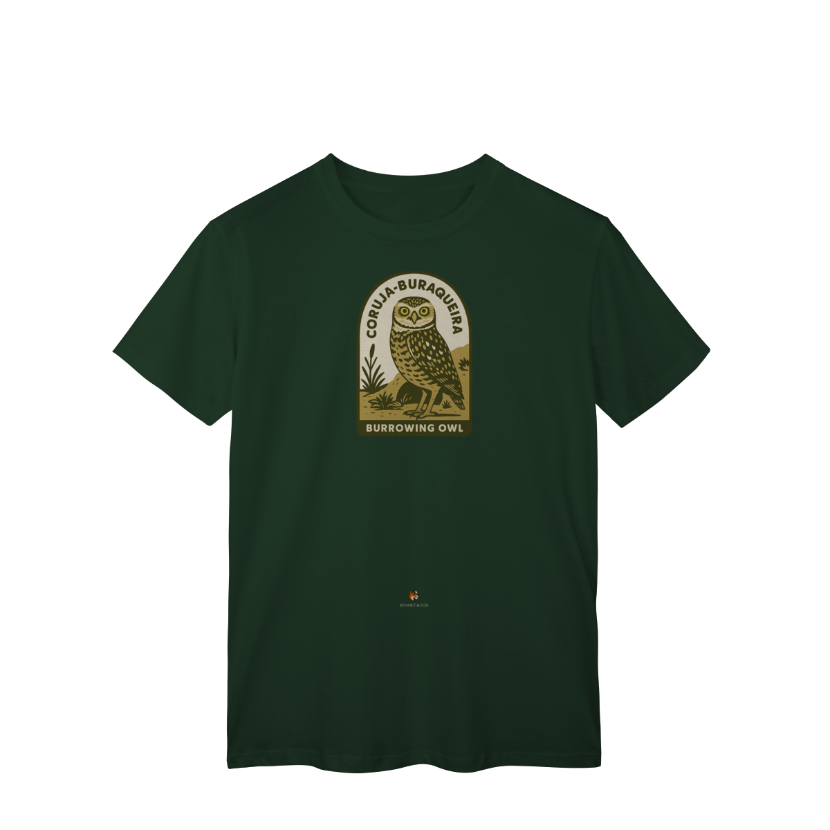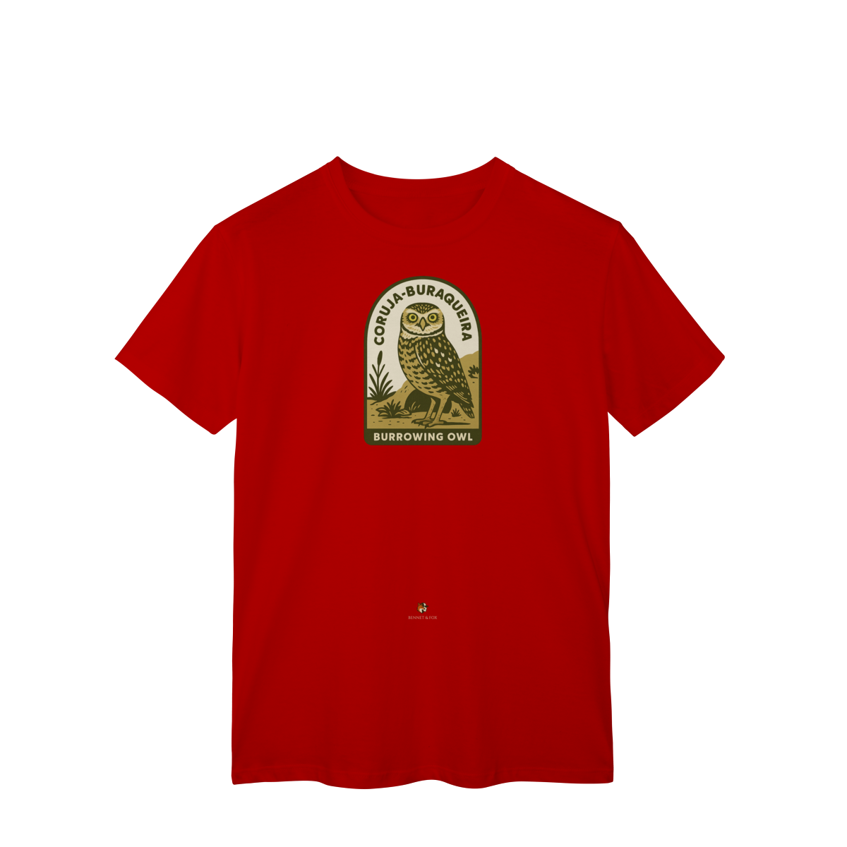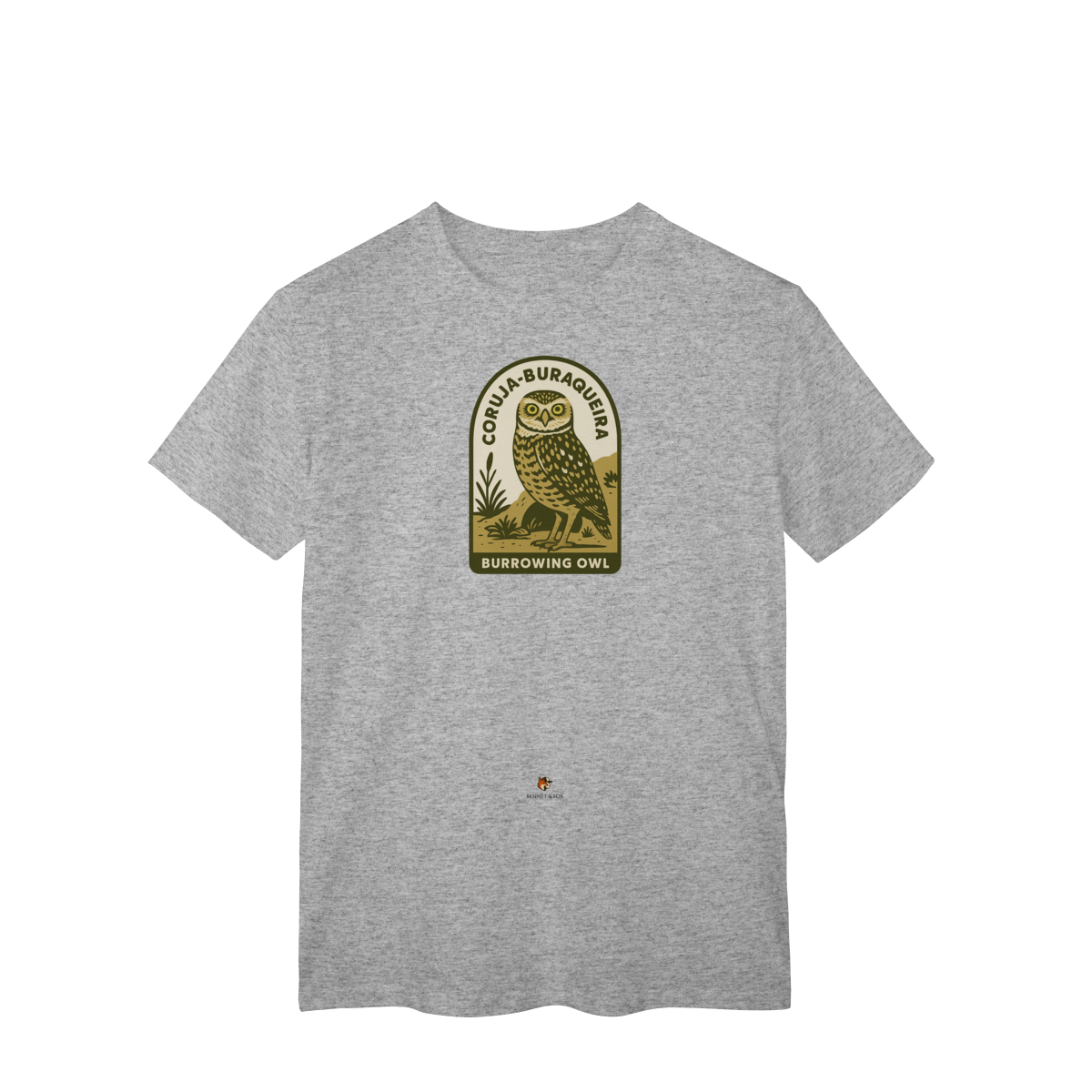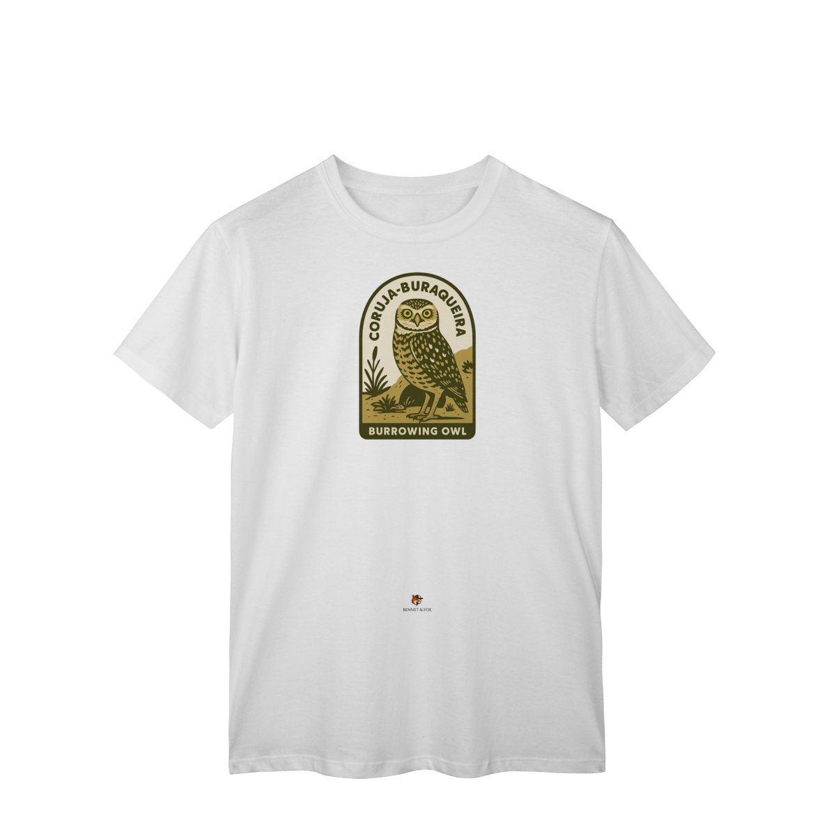Se você busca pela camiseta da Coruja-Buraqueira, encontrou a peça que celebra uma das aves mais cativantes do Brasil. Esta versão Clássica e unissex da Bennet & Fox é uma homenagem a este ícone da nossa fauna, confeccionada em malha leve e confortável de 100% algodão cardado.