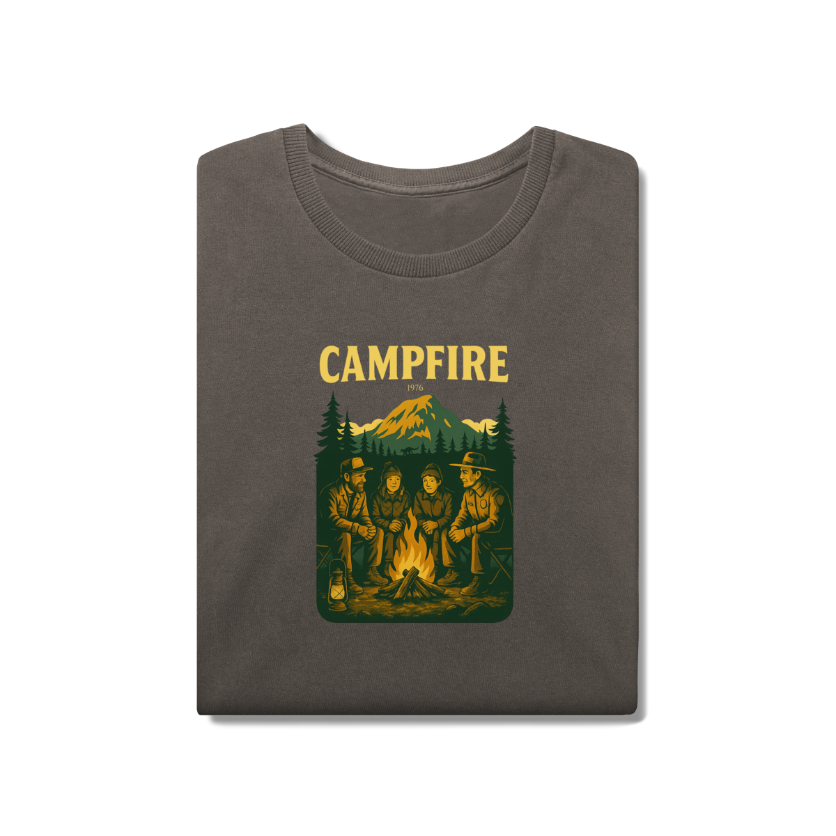 A fogueira é o centro do universo outdoor. É ao redor dela que compartilhamos histórias, nos aquecemos e nos conectamos com a noite. Nossa estampa foi criada para capturar essa essência: o calor das chamas, o cheiro de lenha queimando e a camaradagem que só um acampamento proporciona. É uma peça que veste o aconchego e a simplicidade da vida ao ar livre.