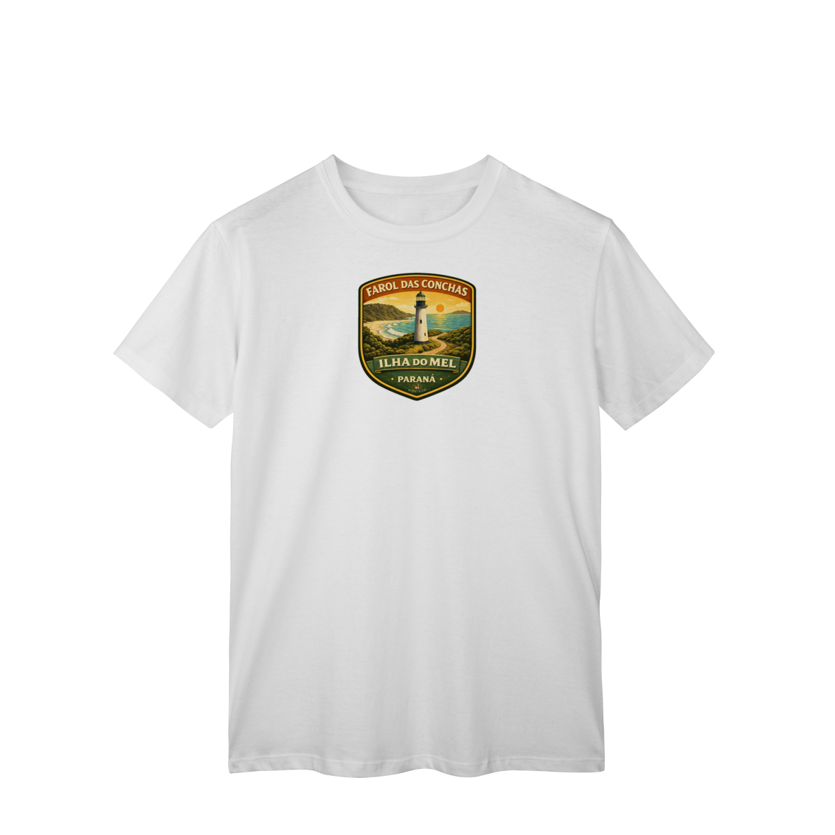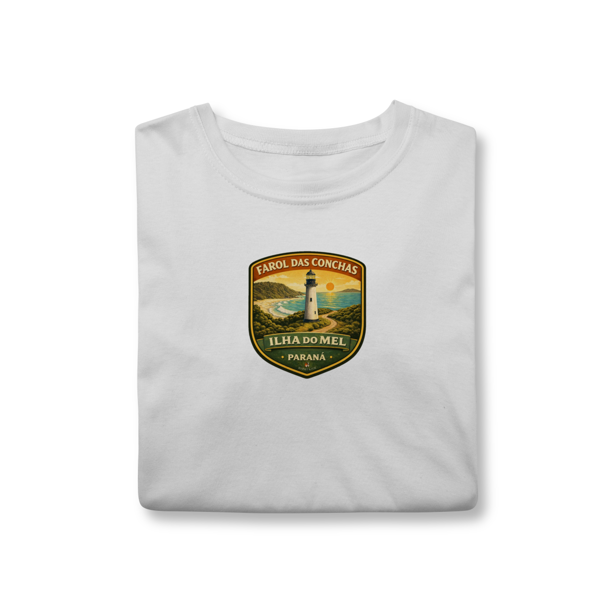 A Ilha do Mel é um refúgio onde o tempo corre devagar. Para quem frequenta a Ilha, o Farol das Conchas é mais que um ponto turístico; é o símbolo de uma vida mais simples, sem carros e em contato direto com a natureza. Nossa estampa foi criada para capturar essa essência: a estrutura escocesa centenária, a vista panorâmica das Praias de Fora e do Farol, e a luz que guia gerações de aventureiros paranaenses.