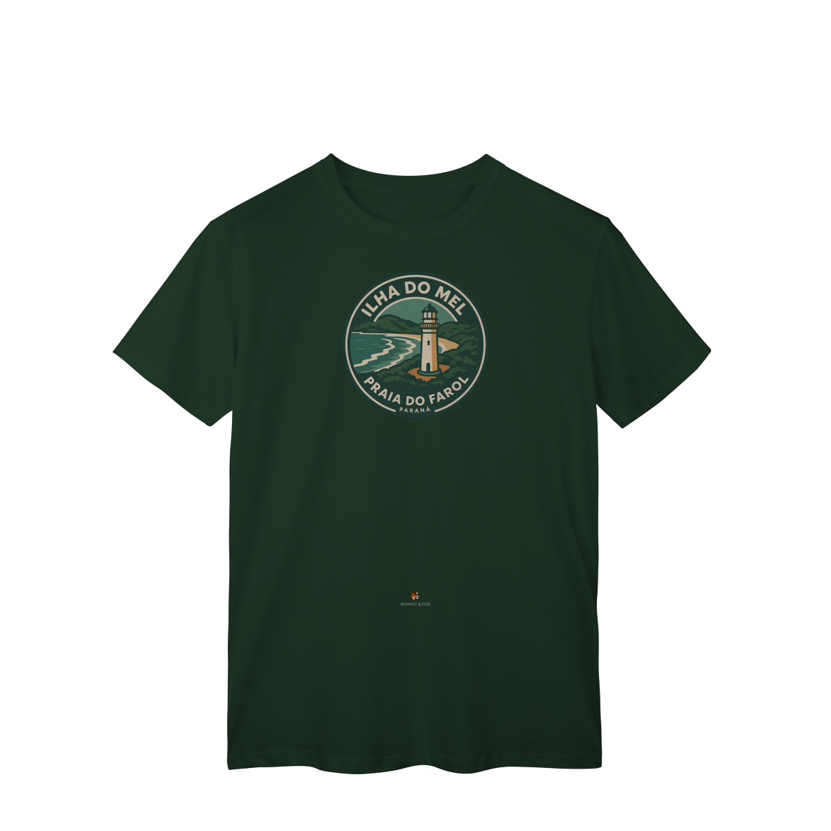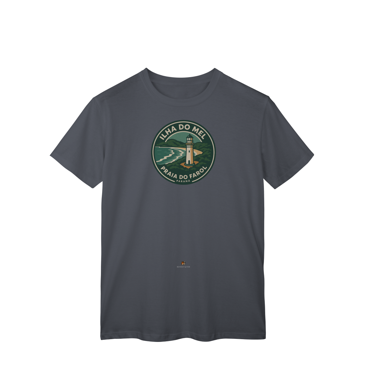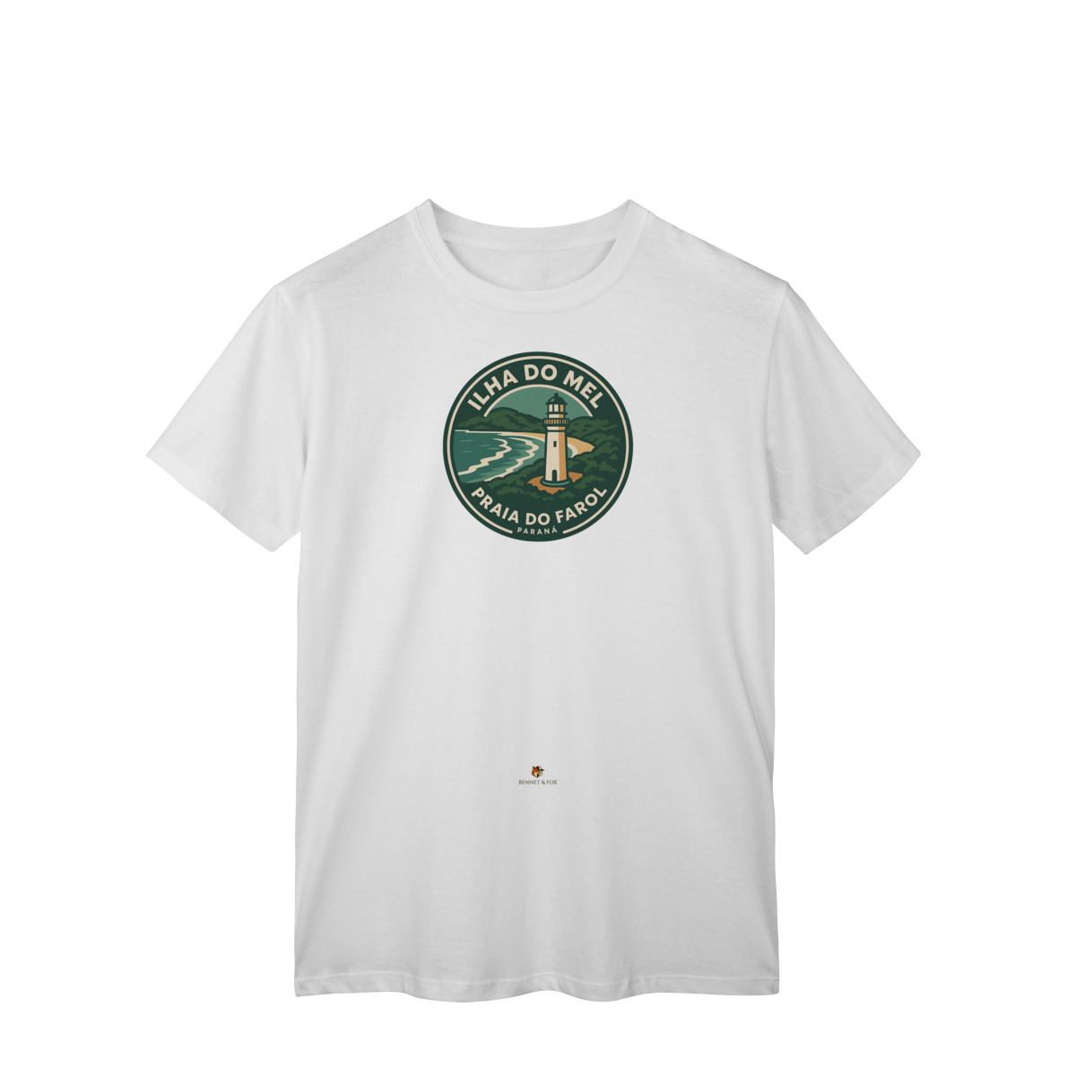 Se você busca pela camiseta da Ilha do Mel, encontrou a peça que celebra o refúgio mais amado do Paraná. Esta versão Clássica e unissex da Bennet & Fox é uma homenagem à Praia do Farol, confeccionada em malha leve e confortável de 100% algodão cardado.