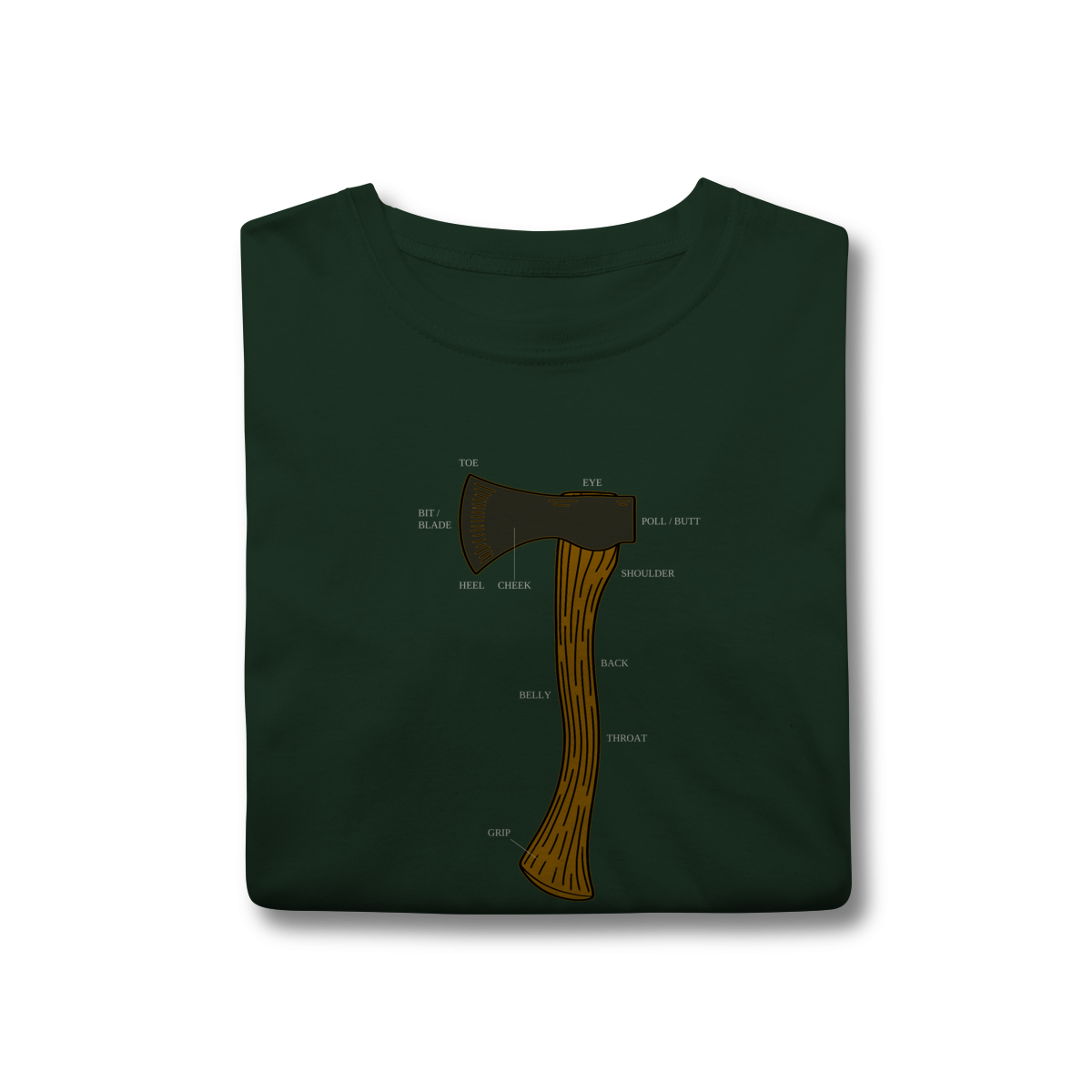 O machado é mais que uma ferramenta, é um símbolo. Representa a capacidade de construir, de prover e de interagir com a natureza de forma respeitosa e habilidosa. Nossa estampa foi criada para honrar essa tradição: a beleza funcional do design de um machado clássico, a textura da madeira e o aço que corta com precisão. É uma peça que veste os valores do buschcraft: conhecimento, preparo e independência.