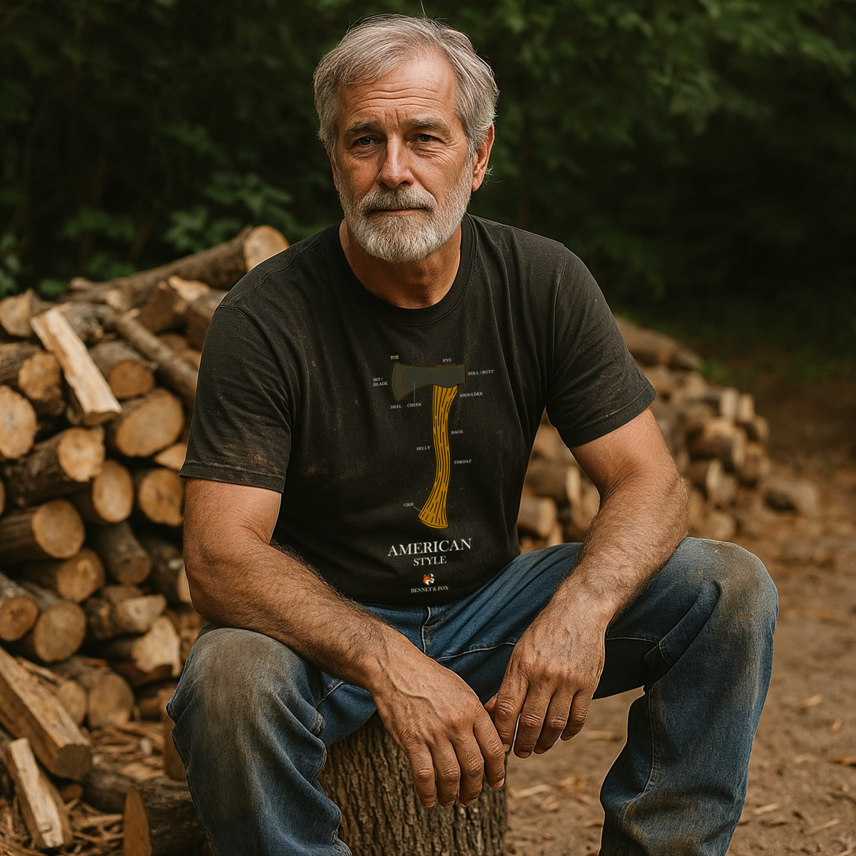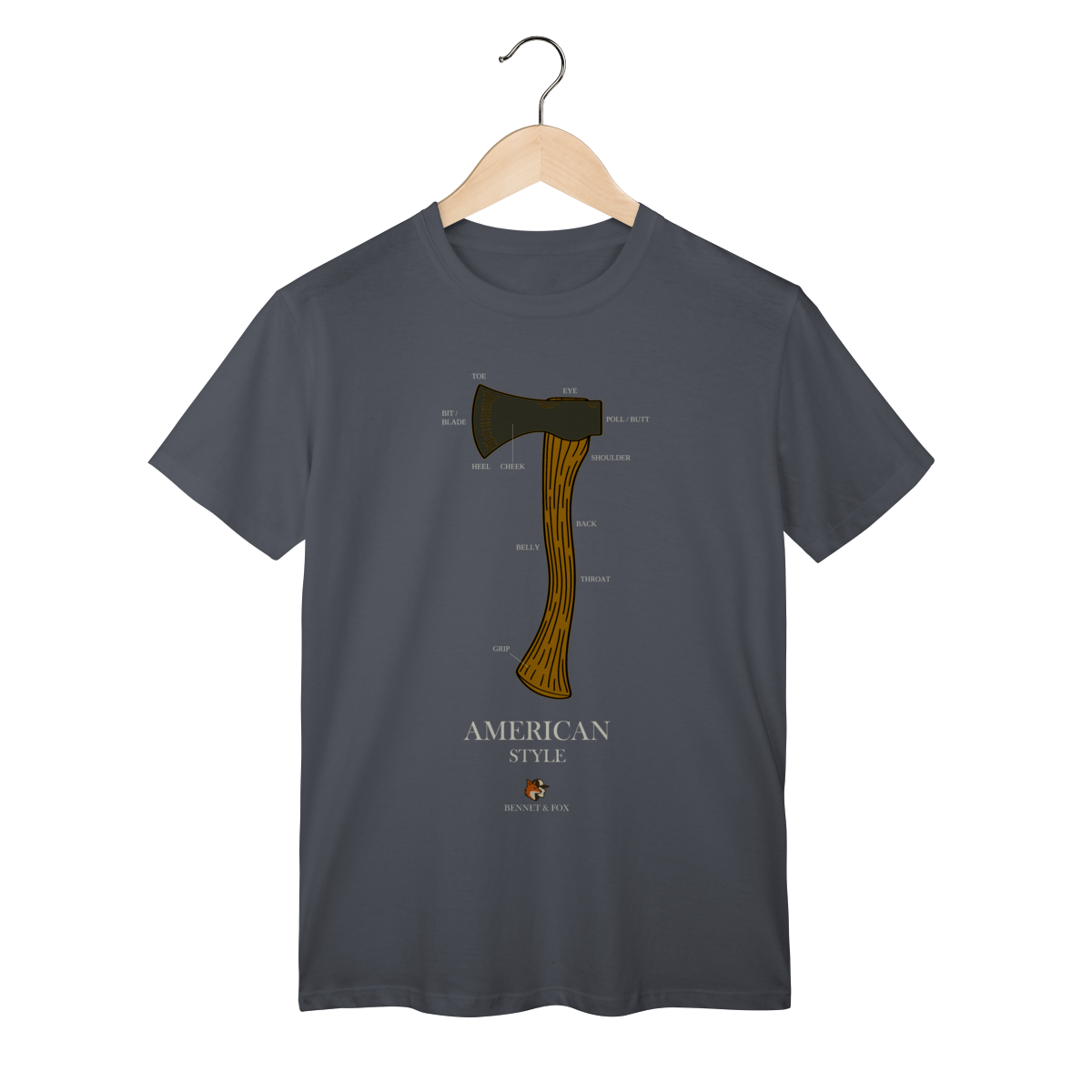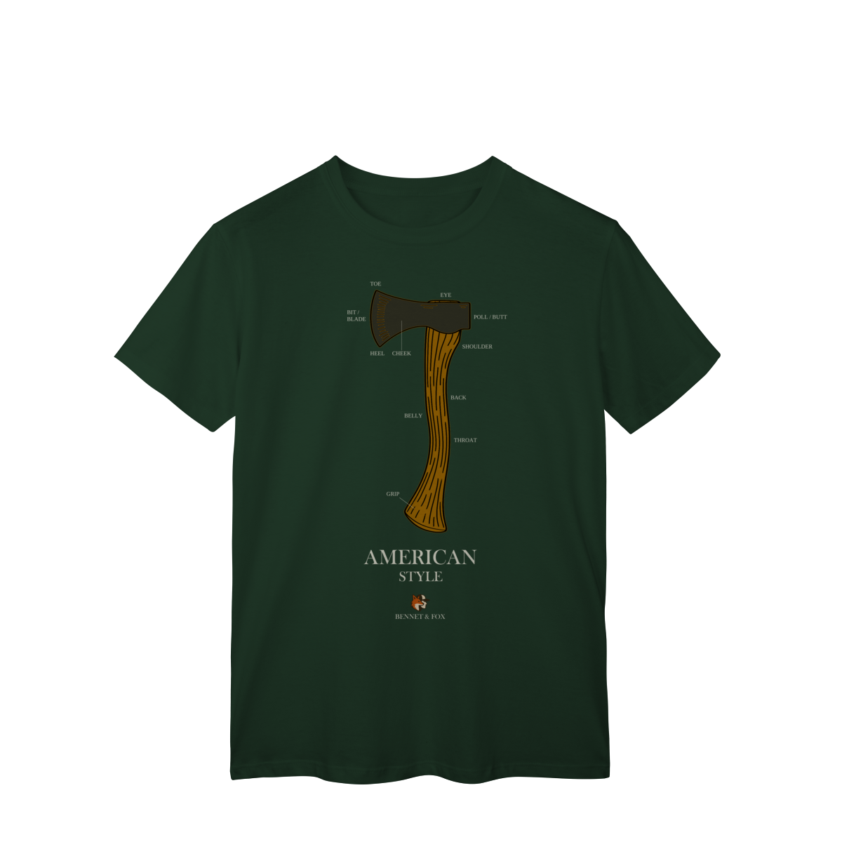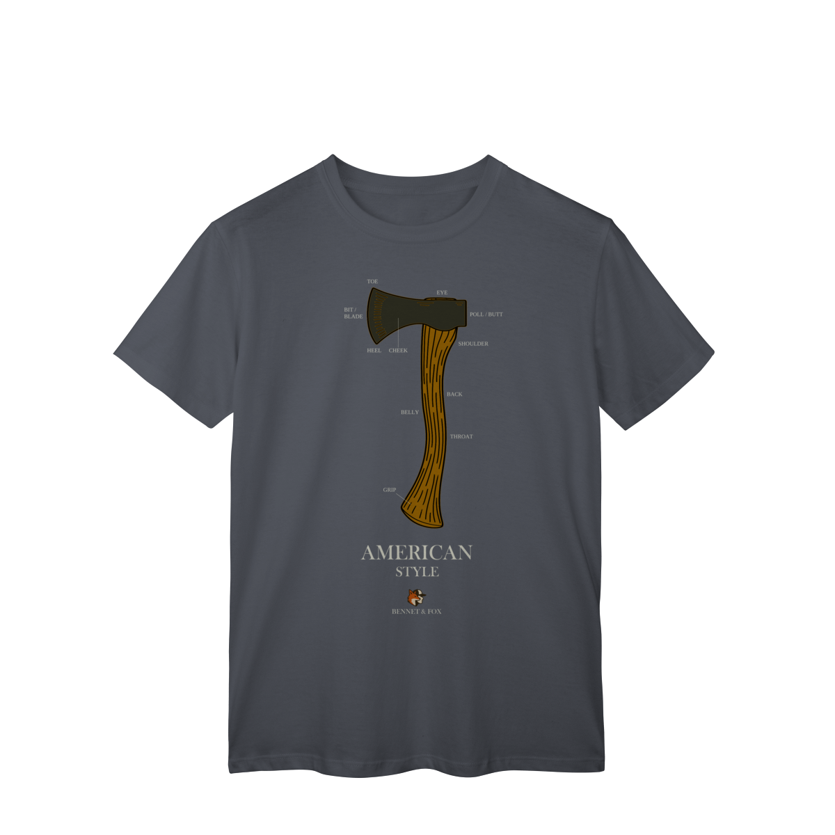 • Design Robusto: Uma estampa de inspiração vintage que celebra o machado americano, com cores duráveis e um visual que transmite força e tradição.