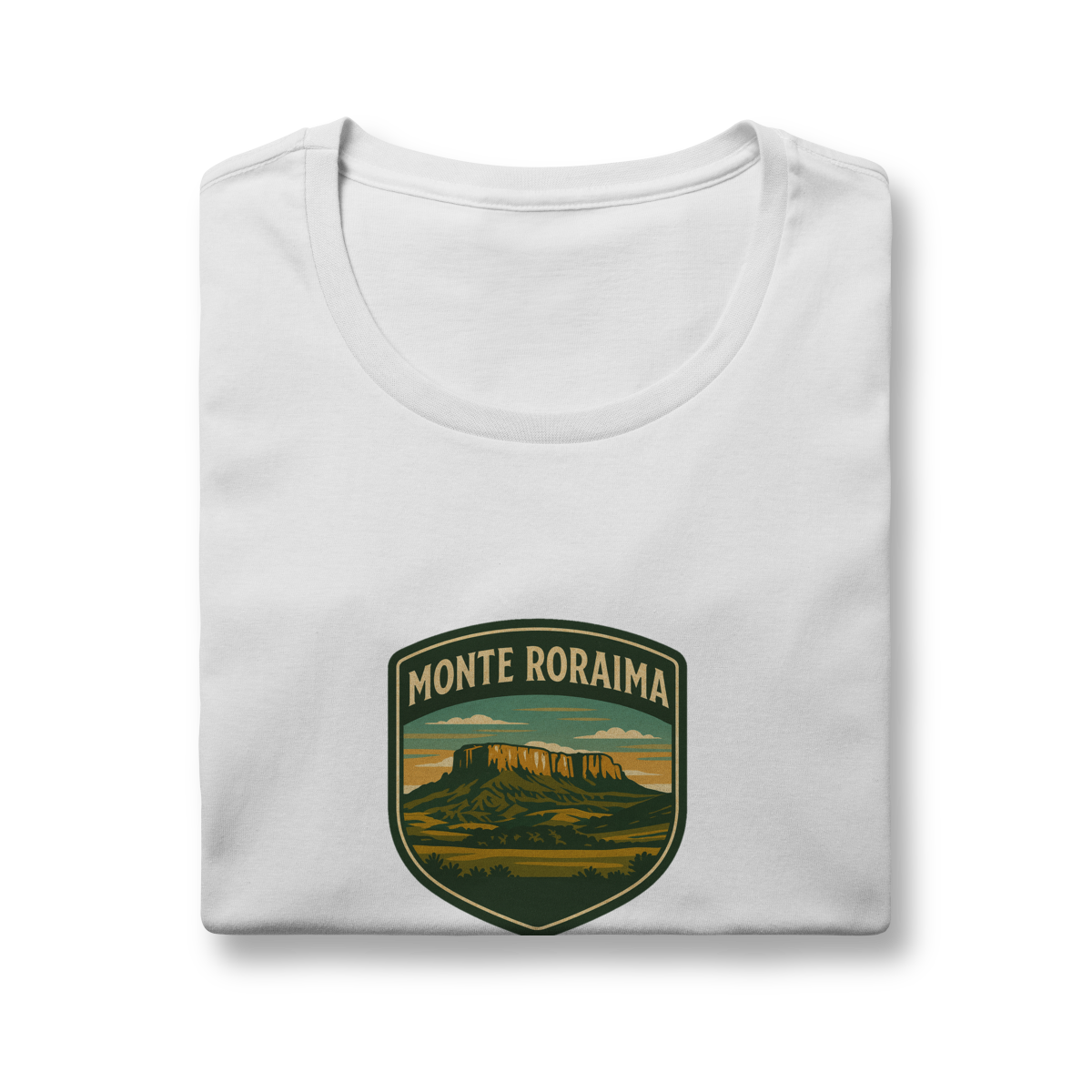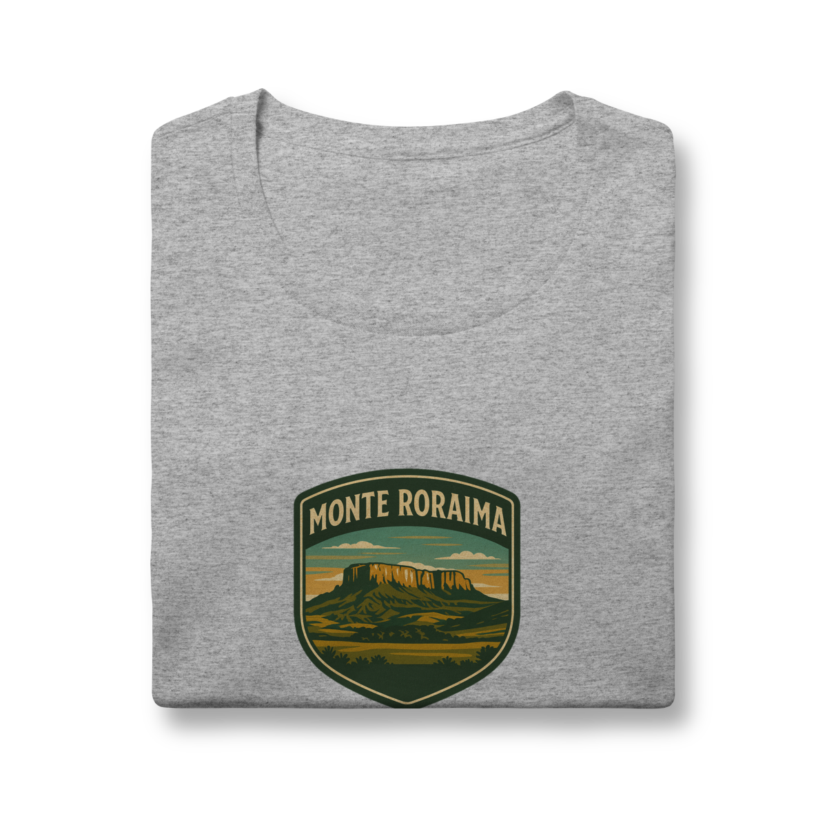 O Monte Roraima não é uma montanha, é outro mundo. Um imenso platô de arenito que se ergue sobre as nuvens, conectando três nações. É o cenário real que parece ficção. Nossa estampa, no estilo de um brasão de explorador, foi criada para honrar essa jornada: a travessia de 8 dias, as formações rochosas únicas do Vale dos Cristais e a sensação de estar no topo do tempo.