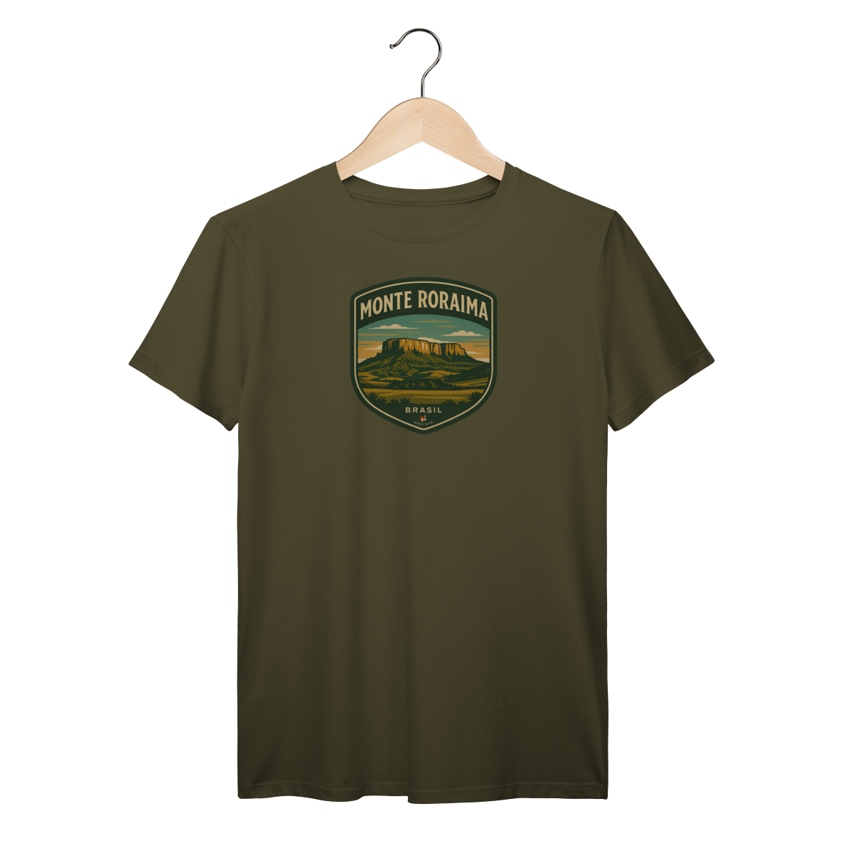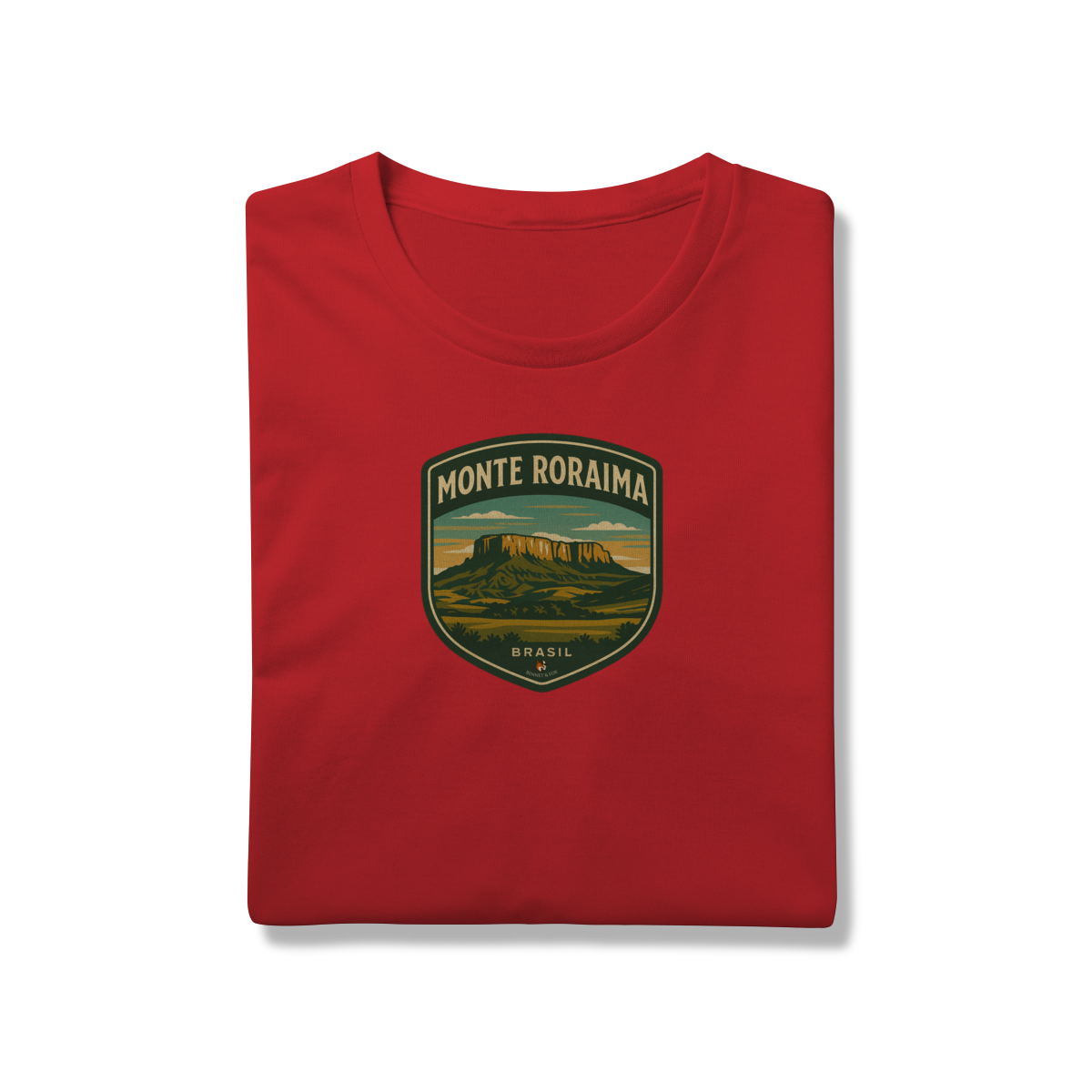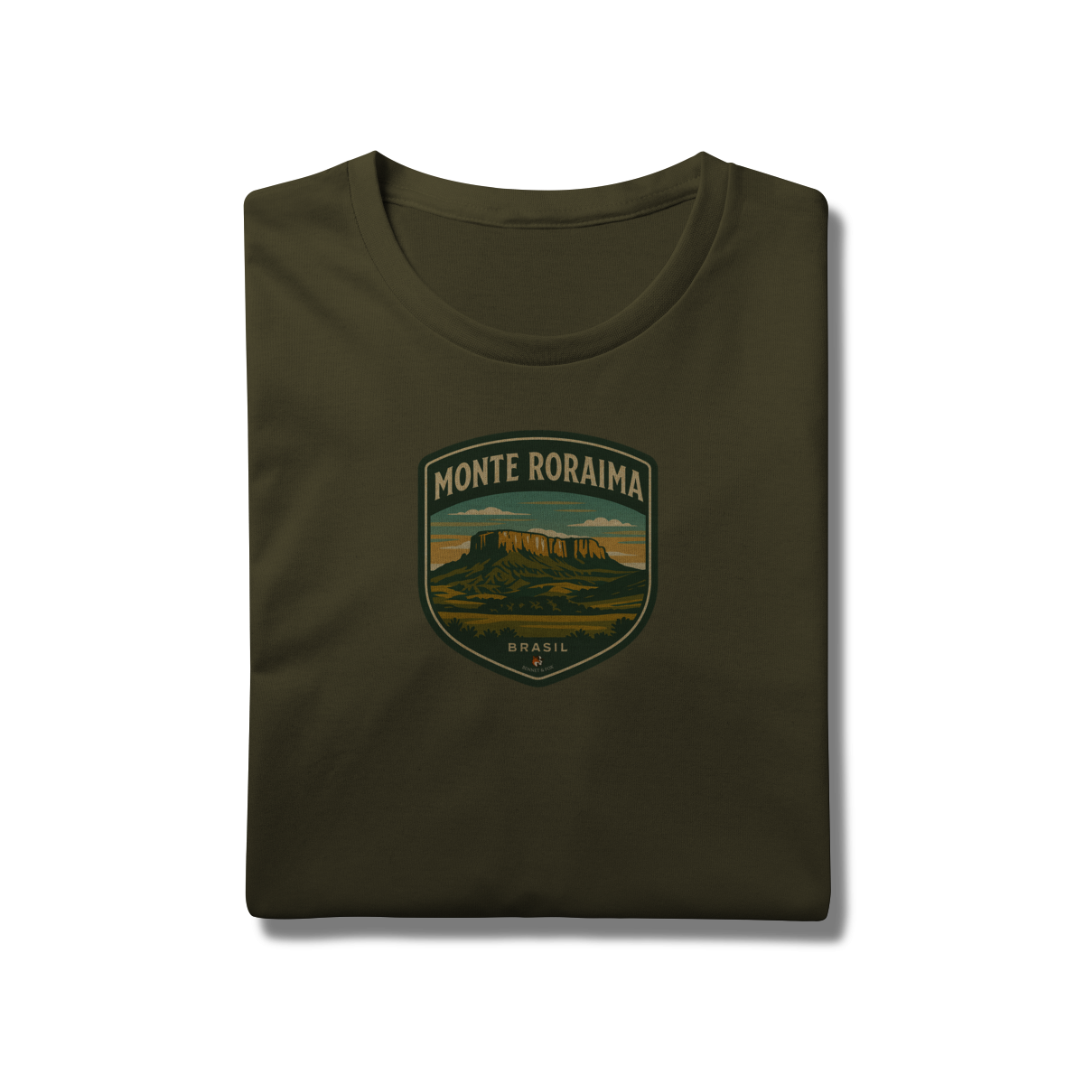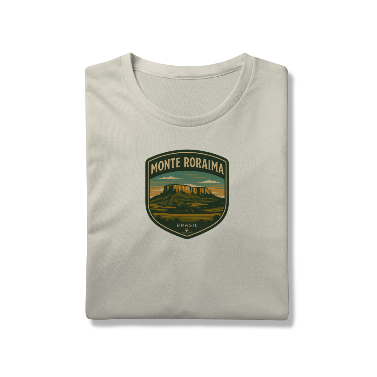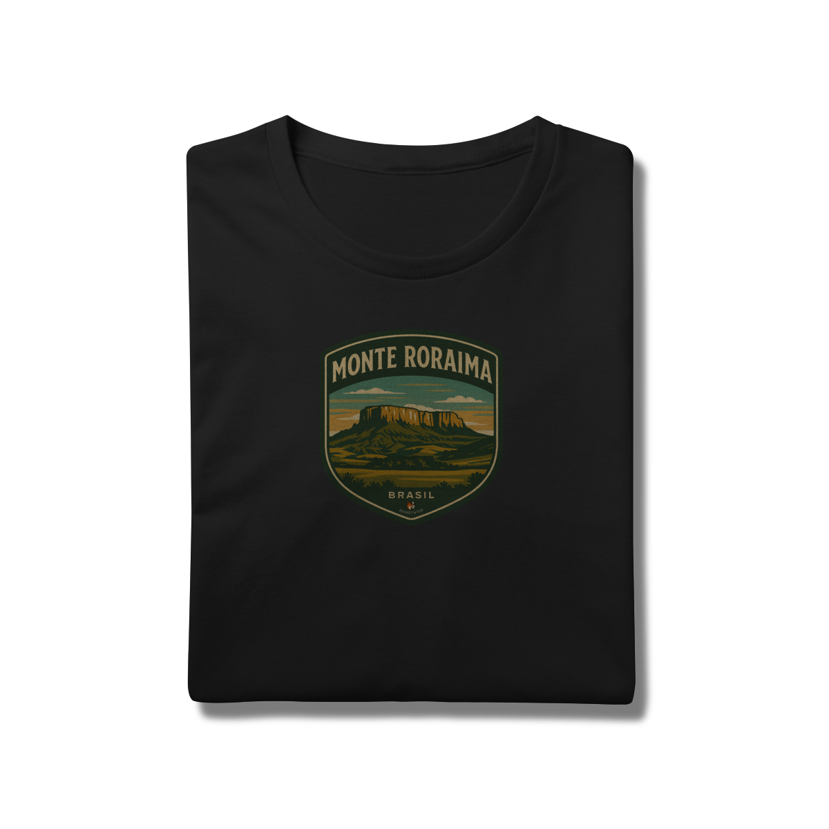 • Design de Emblema: Uma estampa no formato de um "patch" clássico, que retrata a silhueta inconfundível do Monte Roraima, uma das formações geológicas mais antigas da Terra.