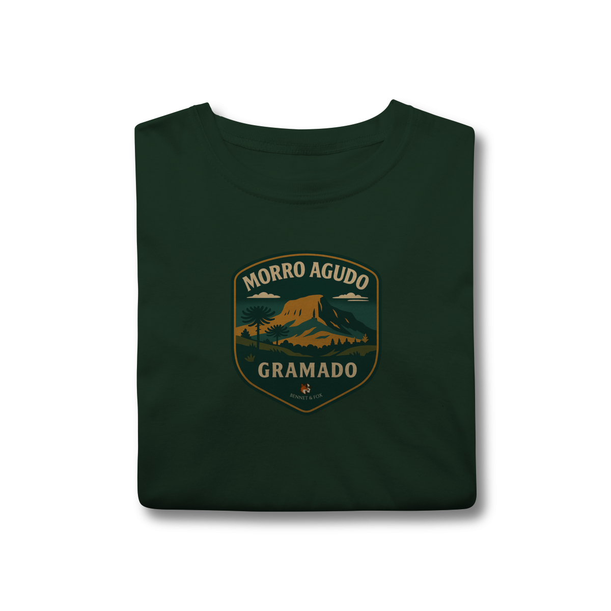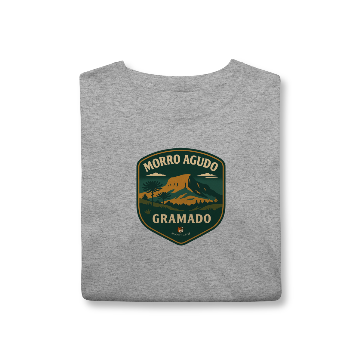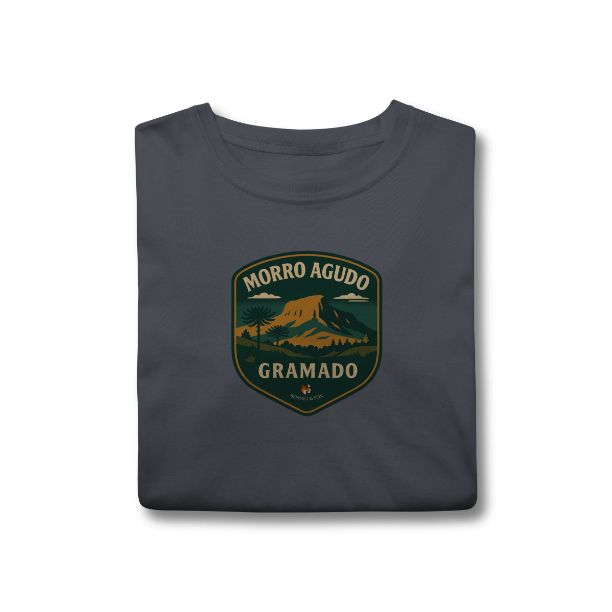 Se você busca pela camiseta do Morro Agudo, encontrou a peça que captura uma das vistas mais espetaculares da Serra Gaúcha. Esta versão Clássica e unissex da Bennet & Fox é confeccionada em malha leve e confortável de 100% algodão cardado.