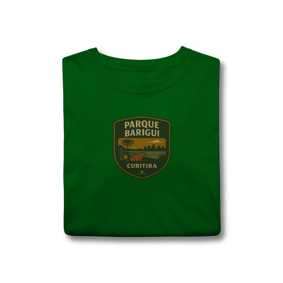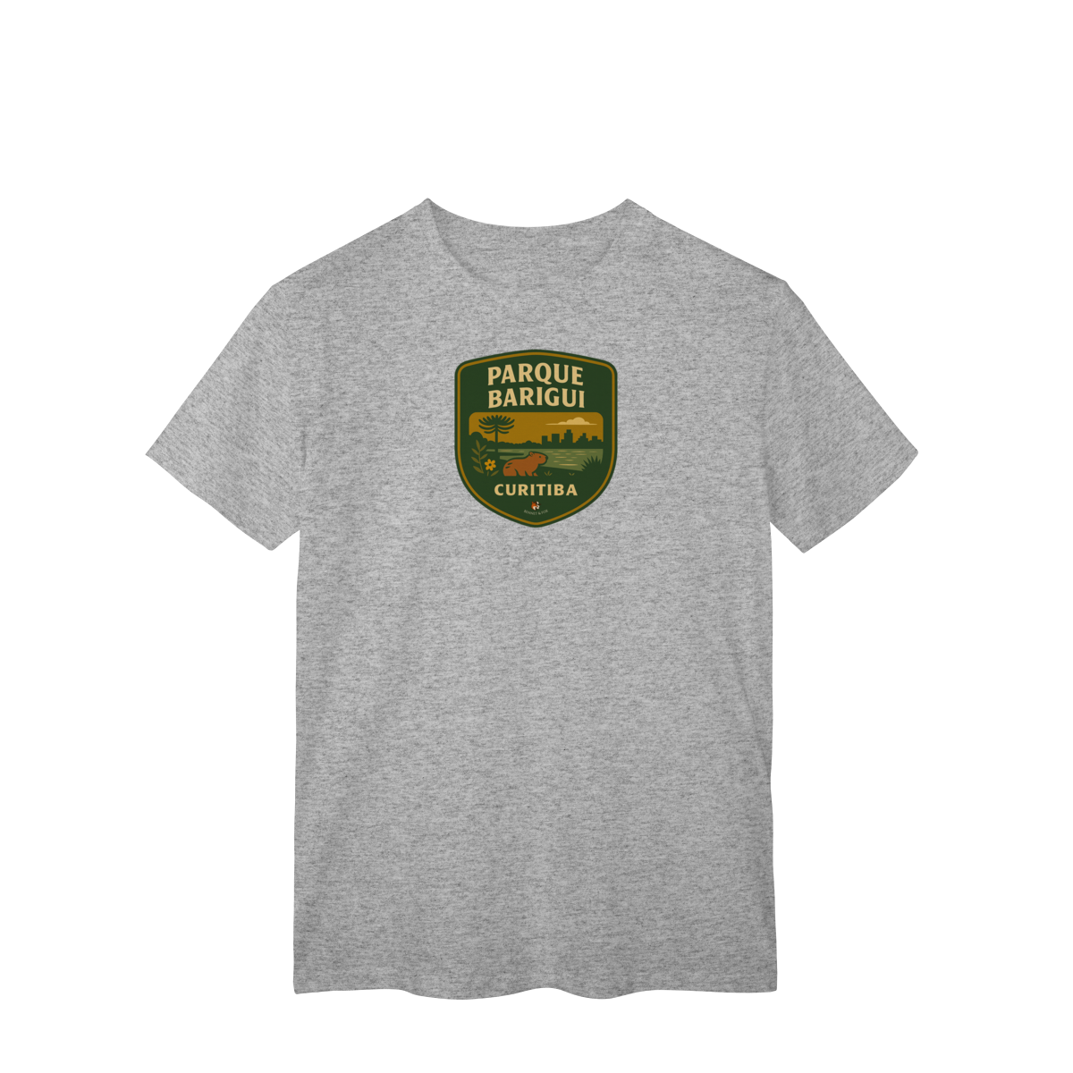 O Parque Barigui é o nosso refúgio urbano. É a corrida no fim do dia, o chimarrão no gramado, o jacaré tomando sol e, claro, as onipresentes capivaras. Nossa estampa foi criada para capturar essa cena curitibana: a silhueta do parque, a tranquilidade do lago e o charme descontraído dos seus famosos habitantes. É uma peça que veste a identidade da nossa cidade.