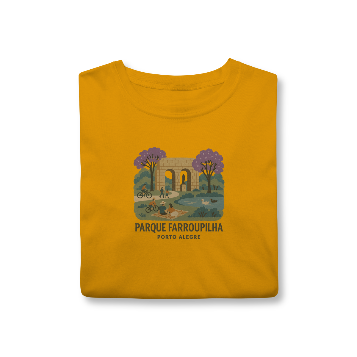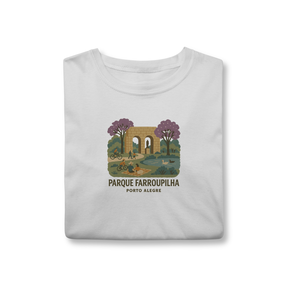 Com um design de inspiração vintage, esta camiseta é perfeita para quem tem uma conexão especial com a capital gaúcha e seus domingos de sol, mate e cultura no parque.