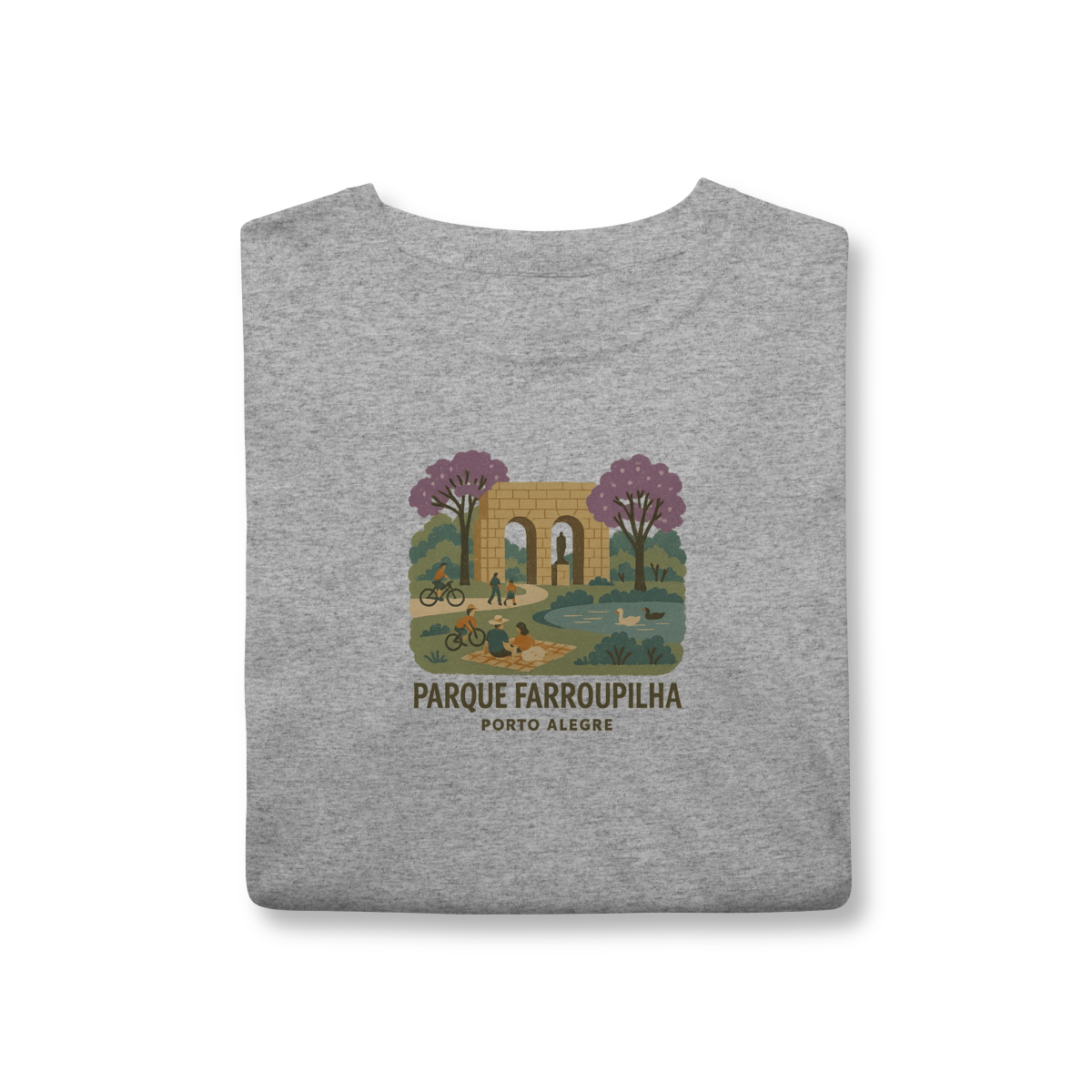 O Parque Farroupilha, ou Redenção para os íntimos, é o palco da vida porto-alegrense. É o artesanato do Brique, o Monumento ao Expedicionário, o espelho d'água e as caminhadas sob as árvores centenárias. Nossa estampa foi criada para capturar essa cena: a energia vibrante do domingo, a tradição do chimarrão e a beleza de um dos parques urbanos mais queridos do Brasil. É uma peça que veste a identidade da capital gaúcha.