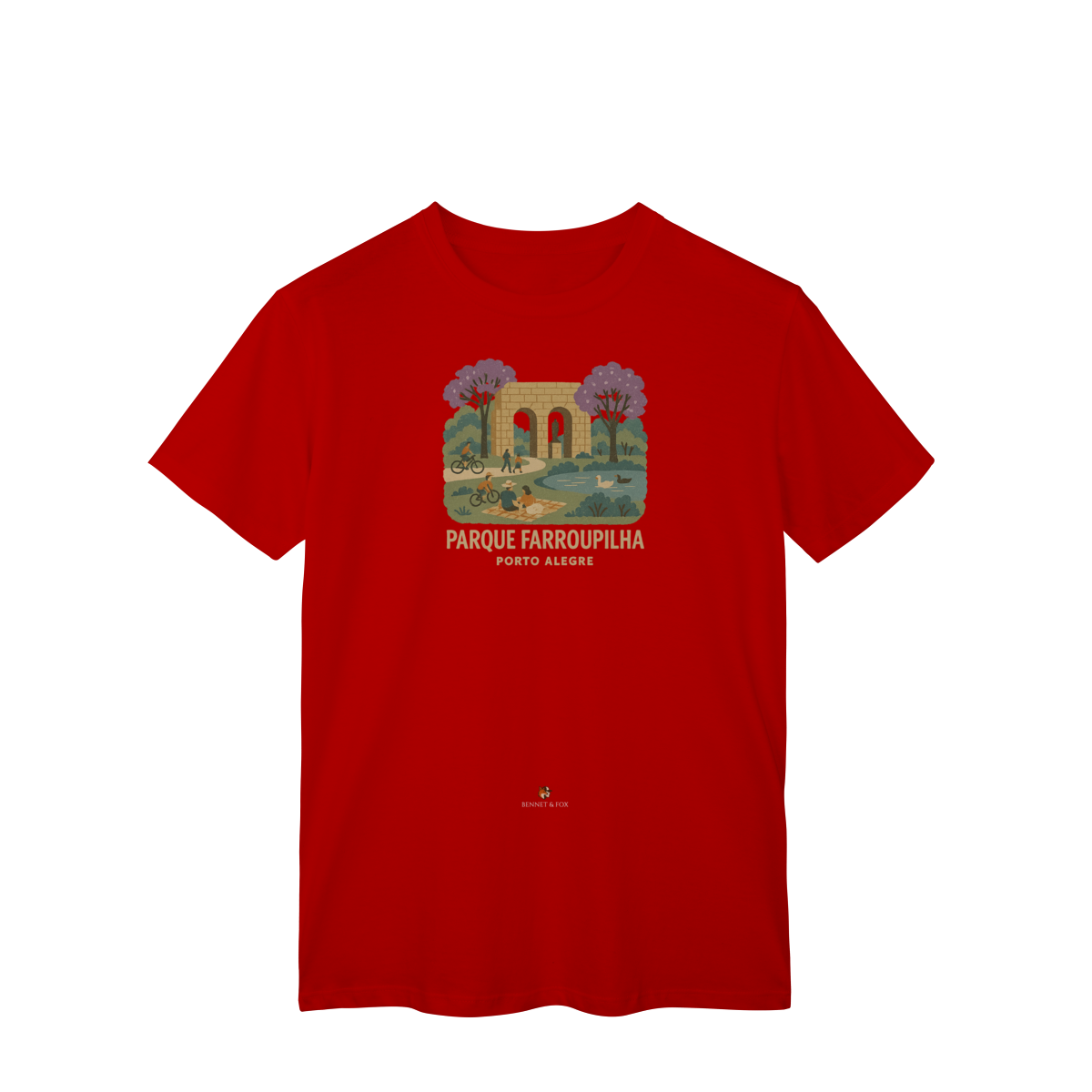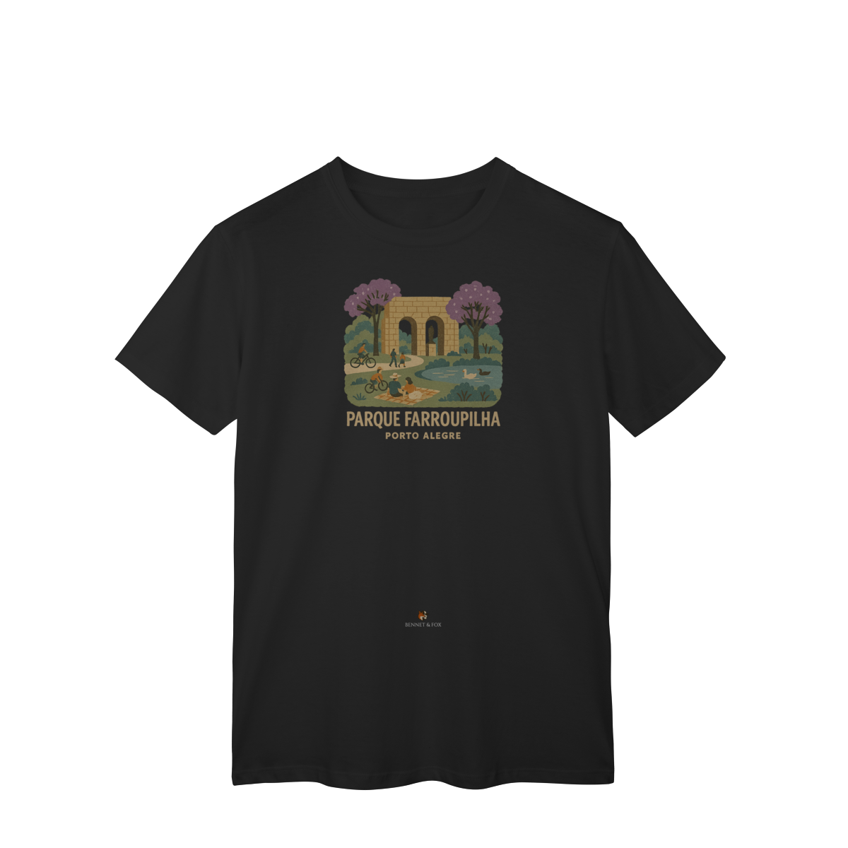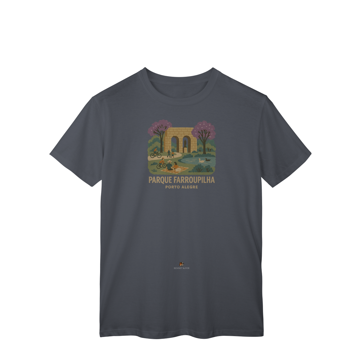 Se você busca pela camiseta do Parque Farroupilha, encontrou a peça que celebra a alma de Porto Alegre. Esta versão Clássica e unissex da Bennet & Fox é uma homenagem à Redenção, confeccionada em malha leve e confortável de 100% algodão cardado.