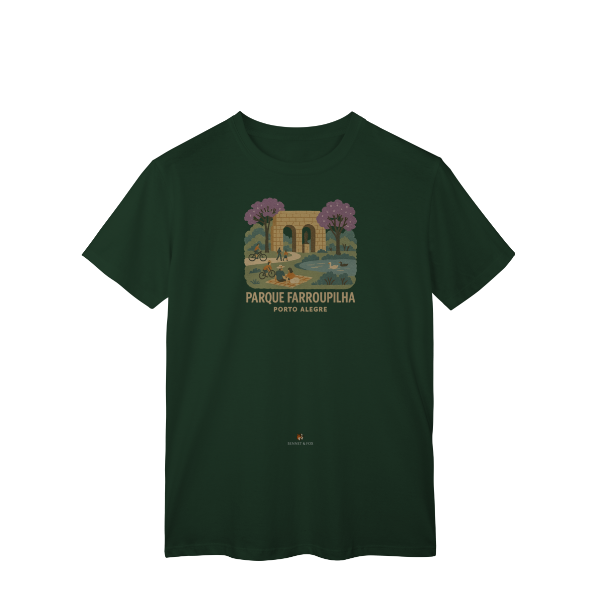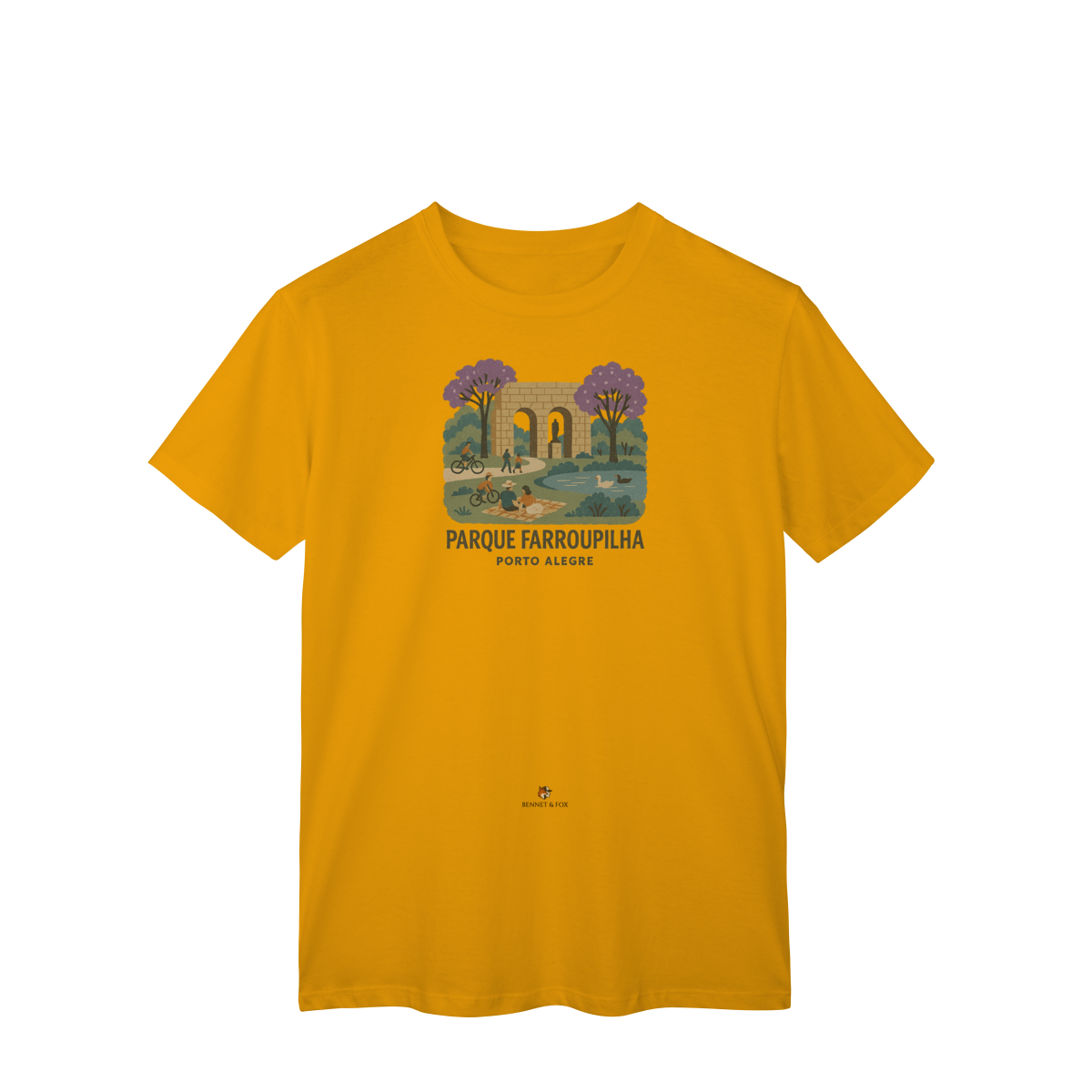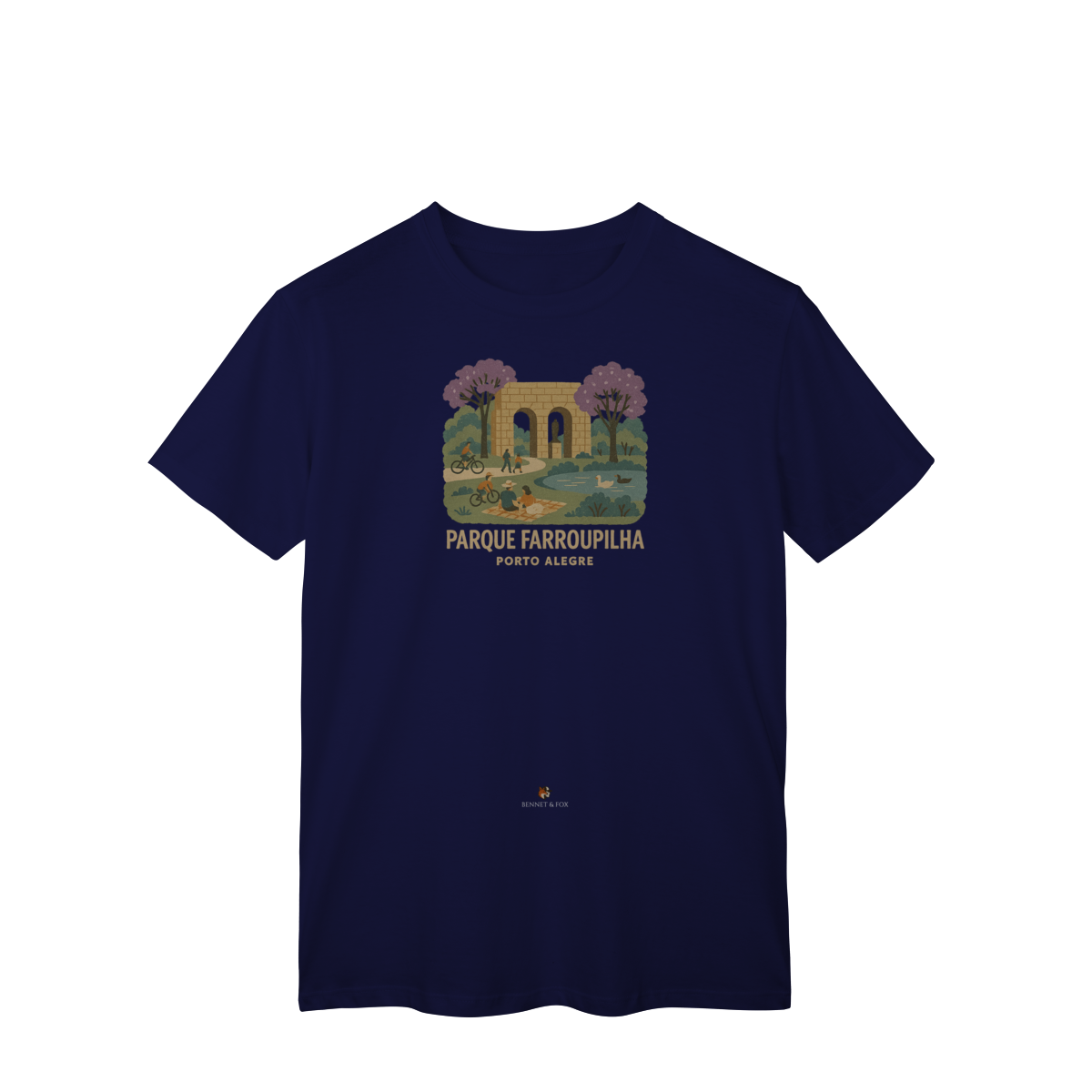 Se você busca pela camiseta do Parque Farroupilha, encontrou a peça que celebra a alma de Porto Alegre. Esta versão Clássica e unissex da Bennet & Fox é uma homenagem à Redenção, confeccionada em malha leve e confortável de 100% algodão cardado.