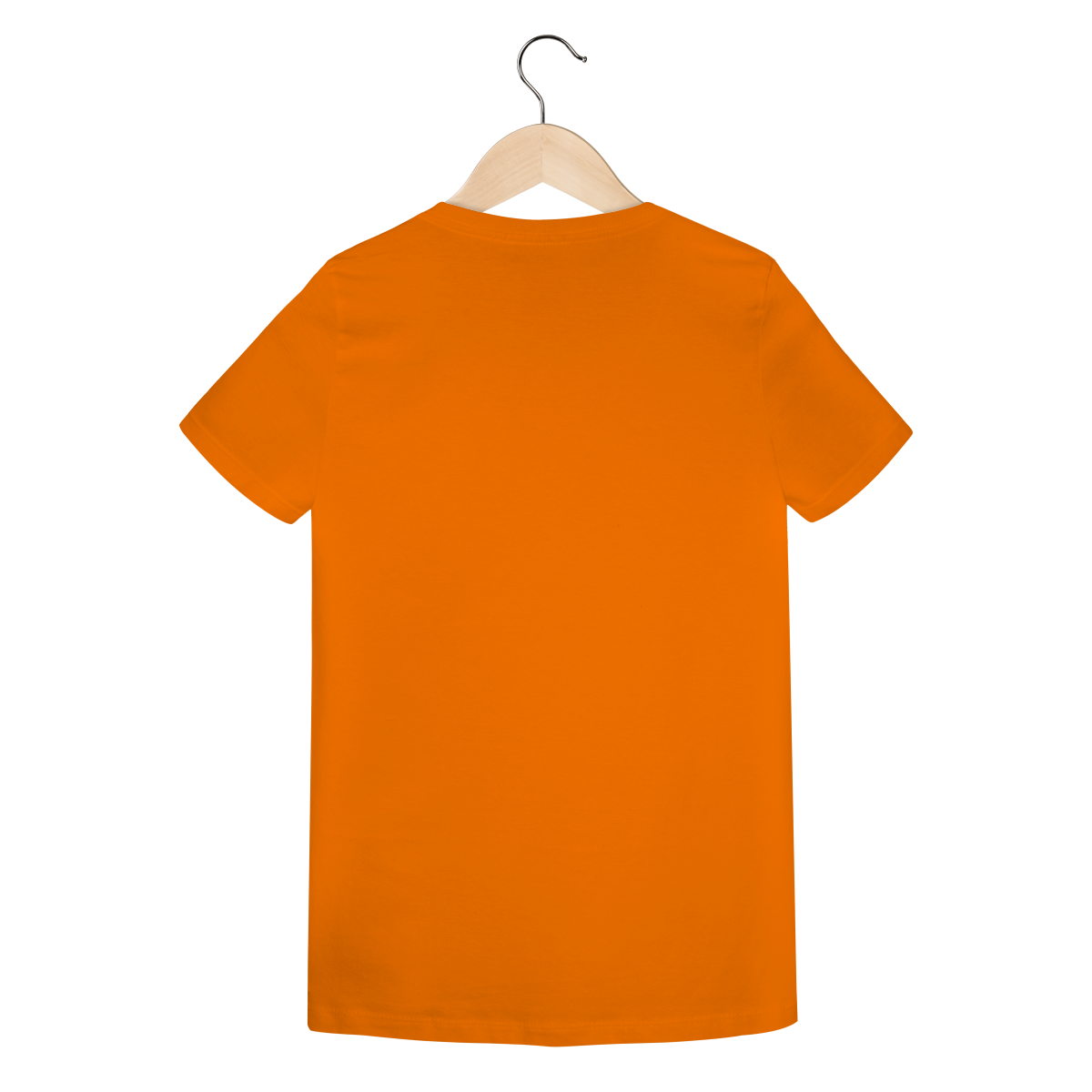 A linha Aventureira (Feminina) usa algodão penteado de 165 g/m² em uma modelagem acinturada. A Prime (Masculina) usa o mesmo algodão, mas mais encorpado (175 g/m²), em um corte reto. Já a Clássica (Unissex) usa um algodão mais leve e robusto (cardado 145 g/m²), também no corte reto.