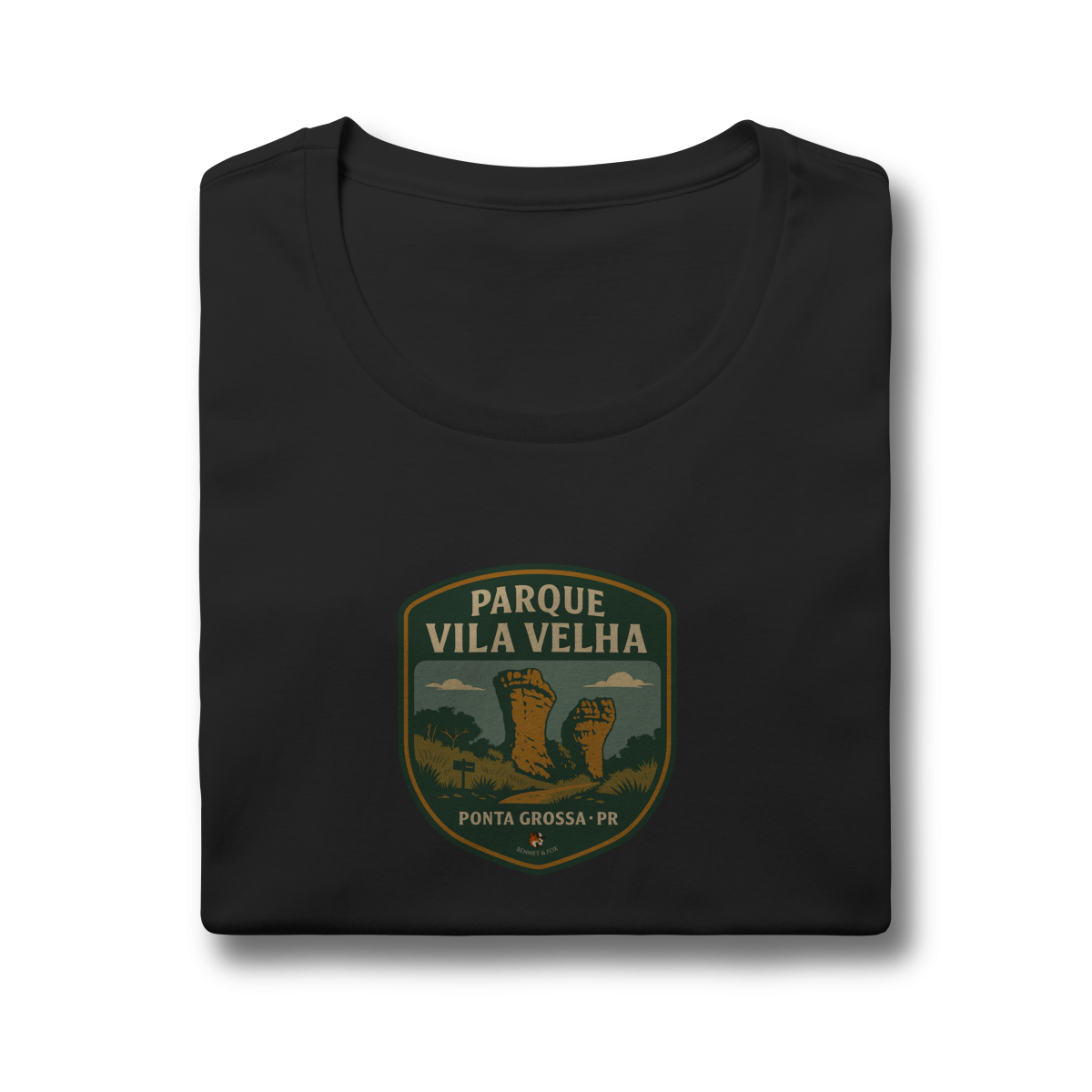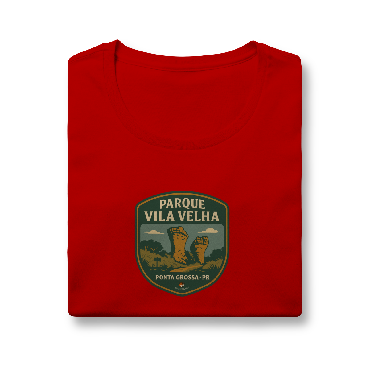 Visitar o Parque Vila Velha é como caminhar por uma cidade esculpida pelo tempo. É procurar o Camelo, a Bota, a Esfinge e se maravilhar com a icônica Taça que desafia a gravidade. Nossa estampa foi criada para capturar essa magia: o mistério das formas, a textura do arenito e a história de milhões de anos gravada na paisagem.