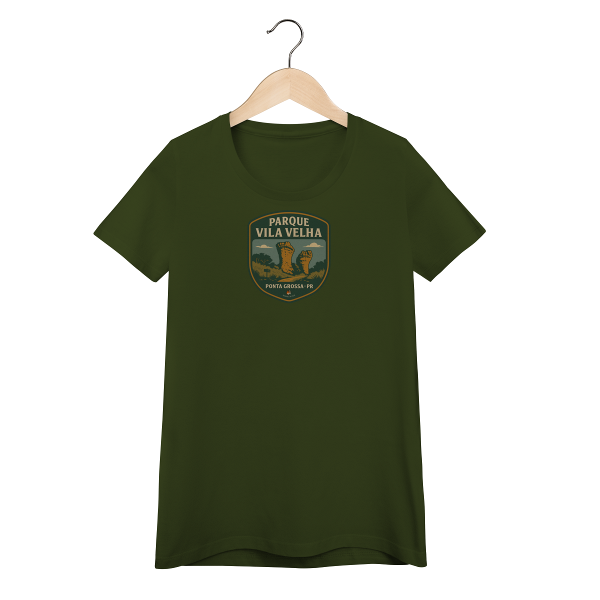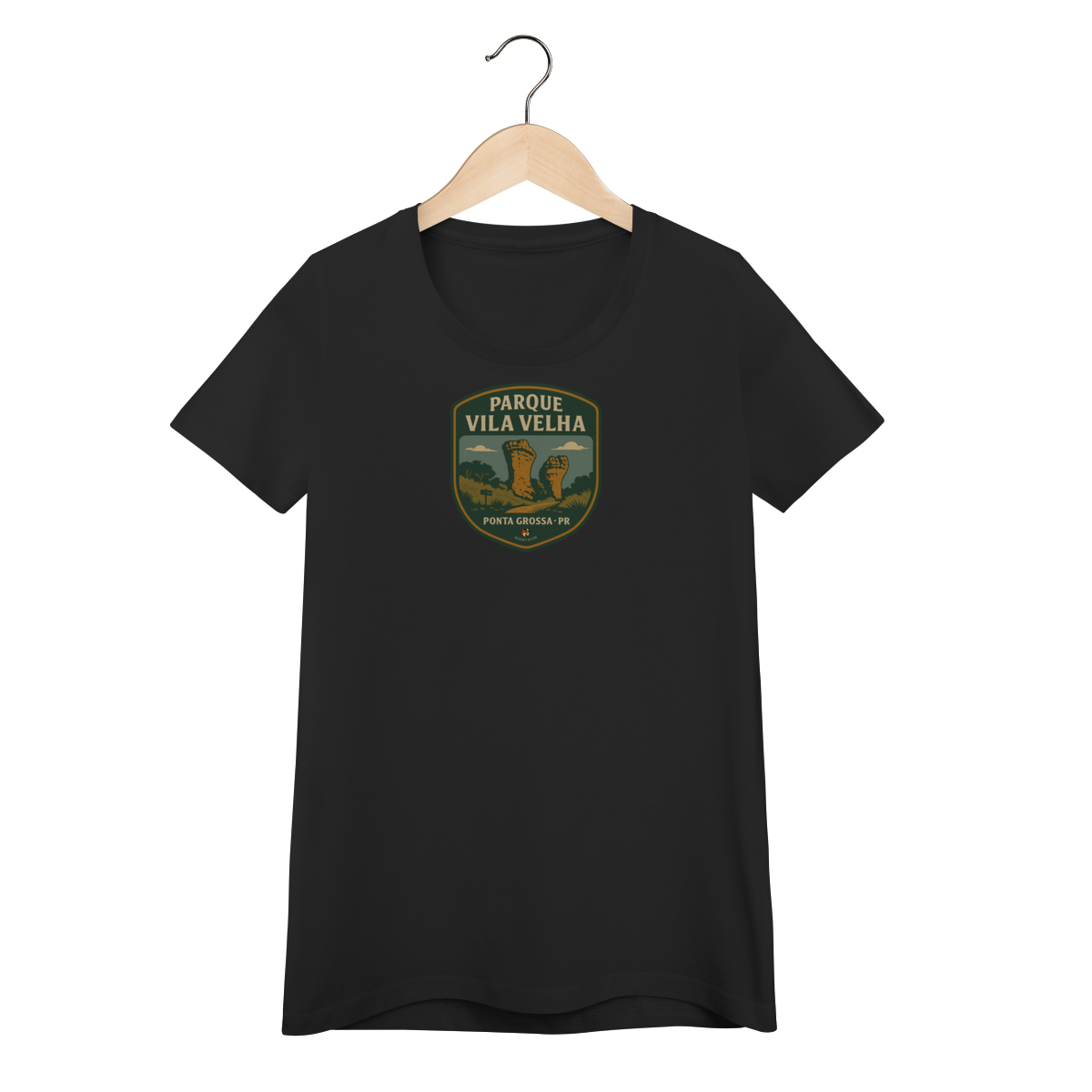 Se você busca pela camiseta feminina do Parque Vila Velha, encontrou a peça que une aventura e um caimento perfeito. Esta edição Aventureira feminina da Bennet & Fox foi desenhada especialmente para a mulher que explora, confeccionada em malha premium de 100% algodão penteado fio 30.1.