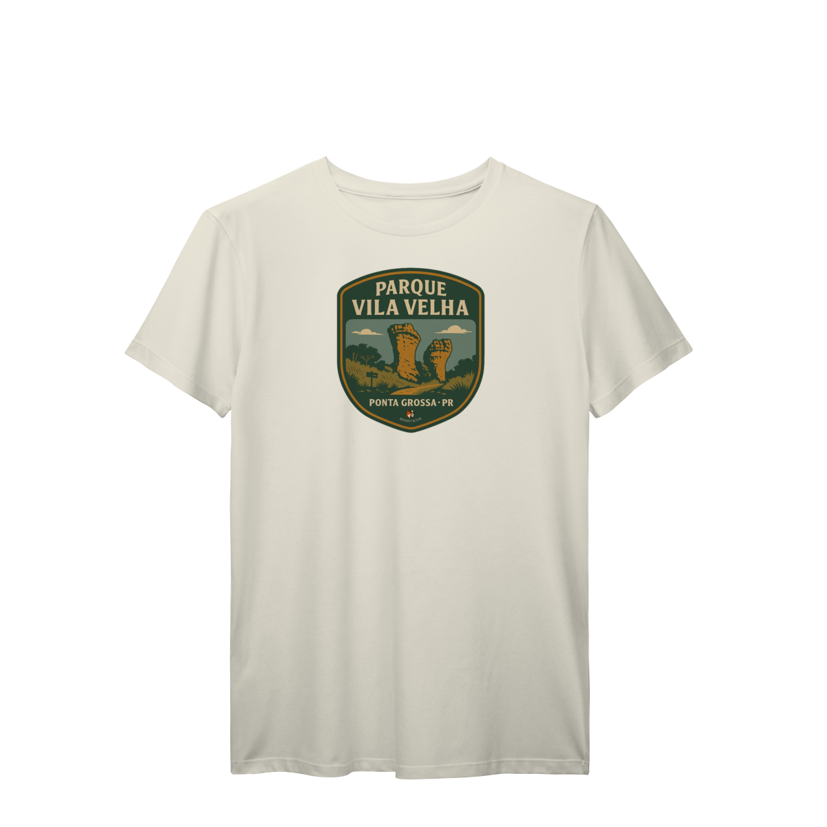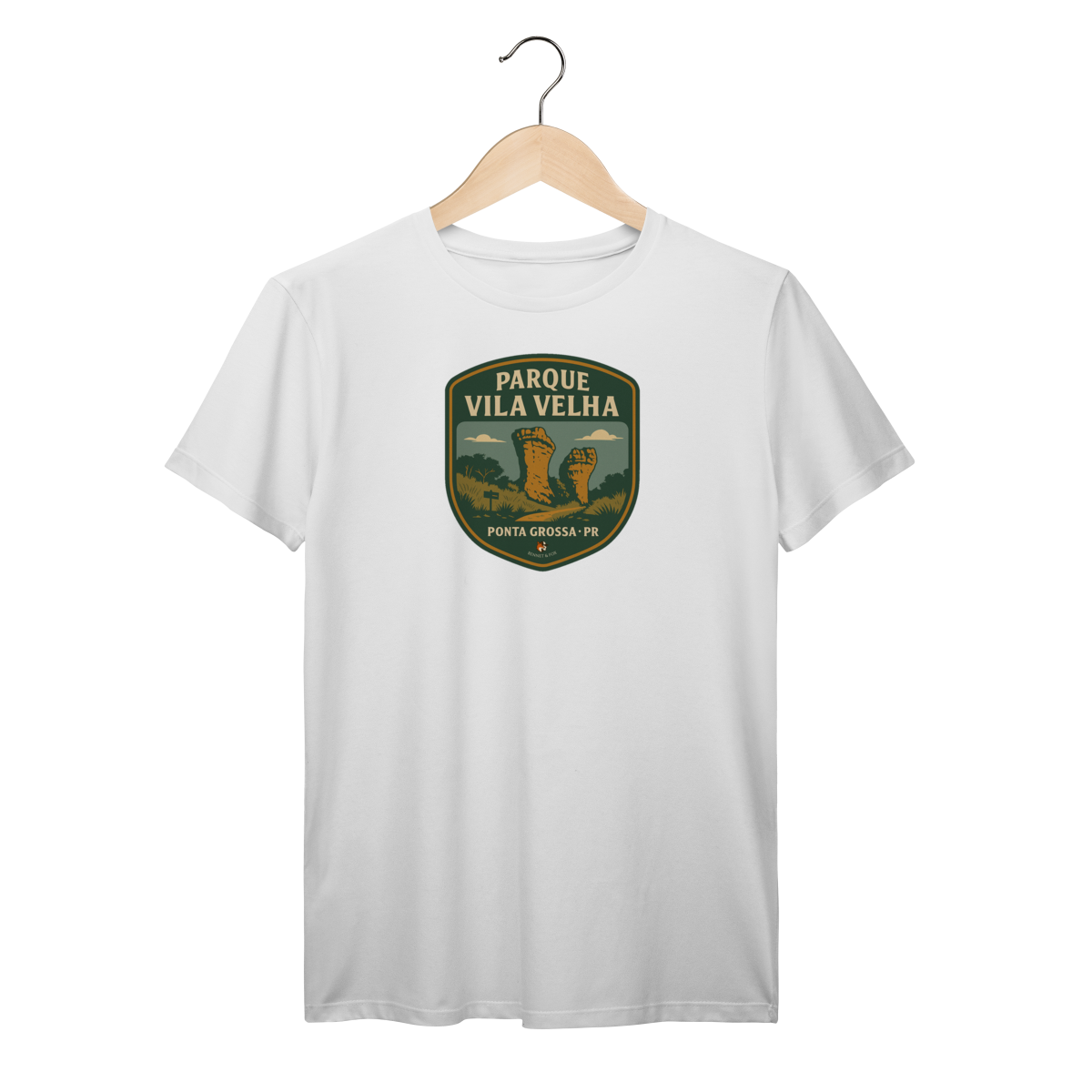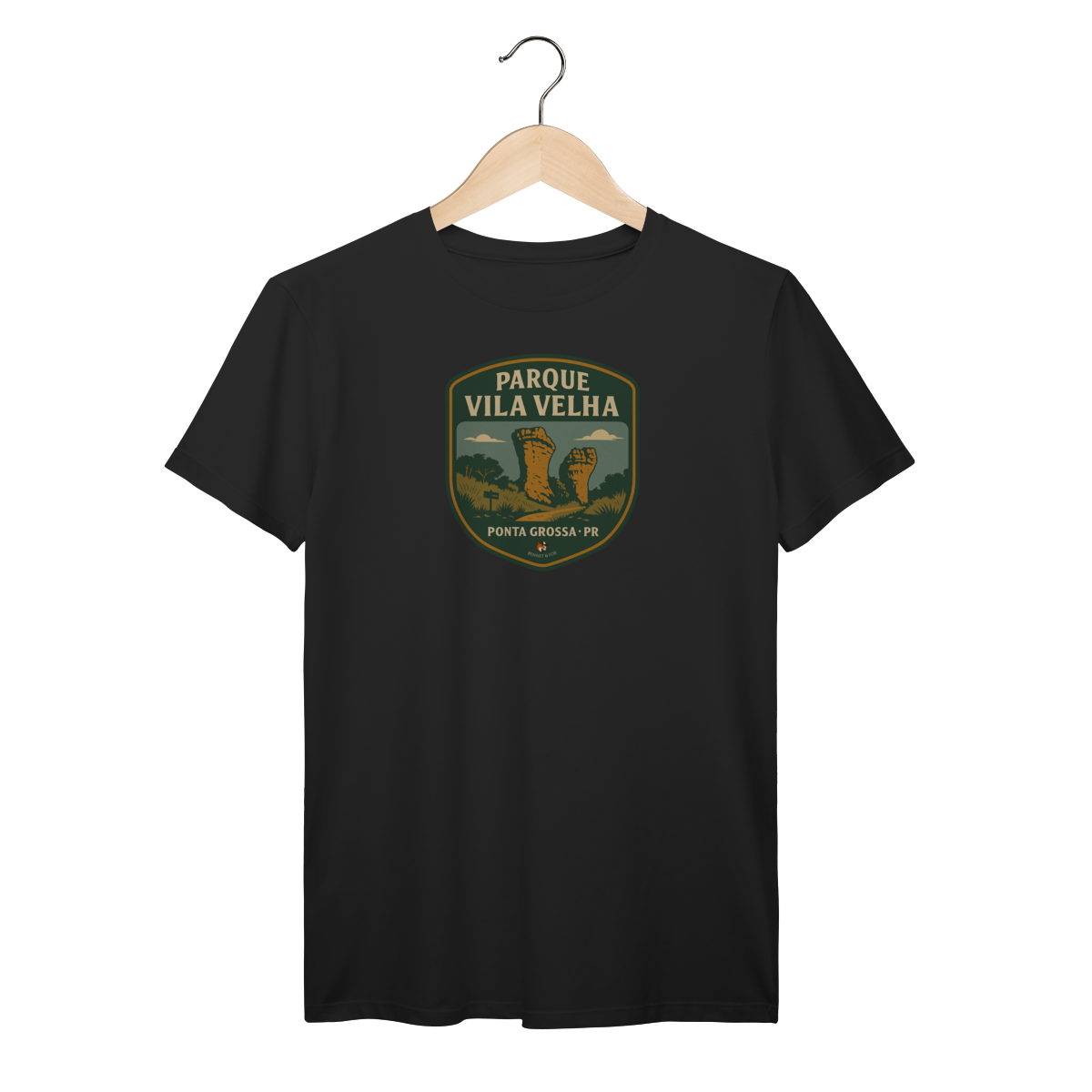 Se você busca pela camiseta do Parque Vila Velha em sua versão definitiva, a encontrou. Esta edição Prime masculina da Bennet & Fox é uma homenagem ao monumento geológico de Ponta Grossa, confeccionada em malha premium ultra macia de 100% algodão penteado fio 30.1.