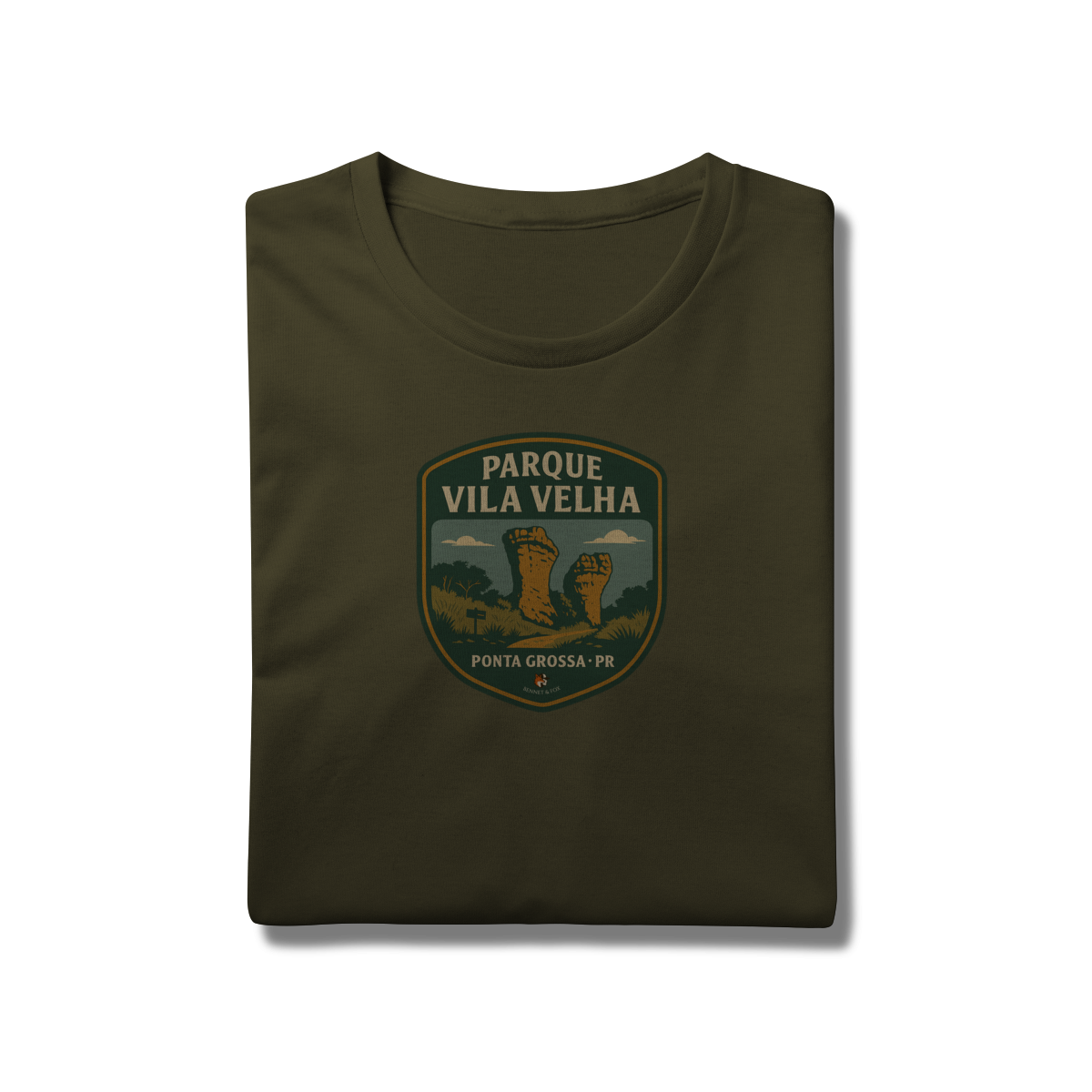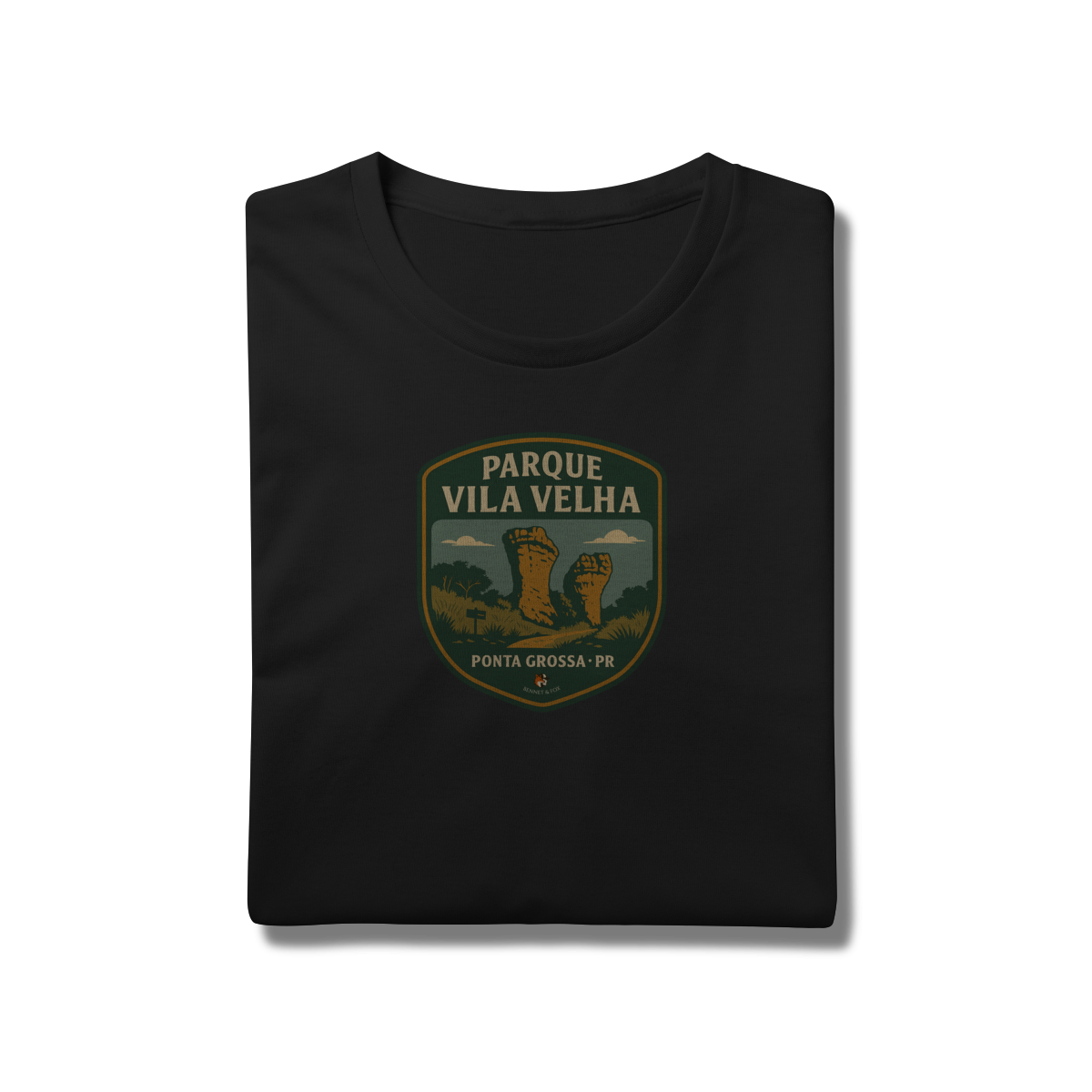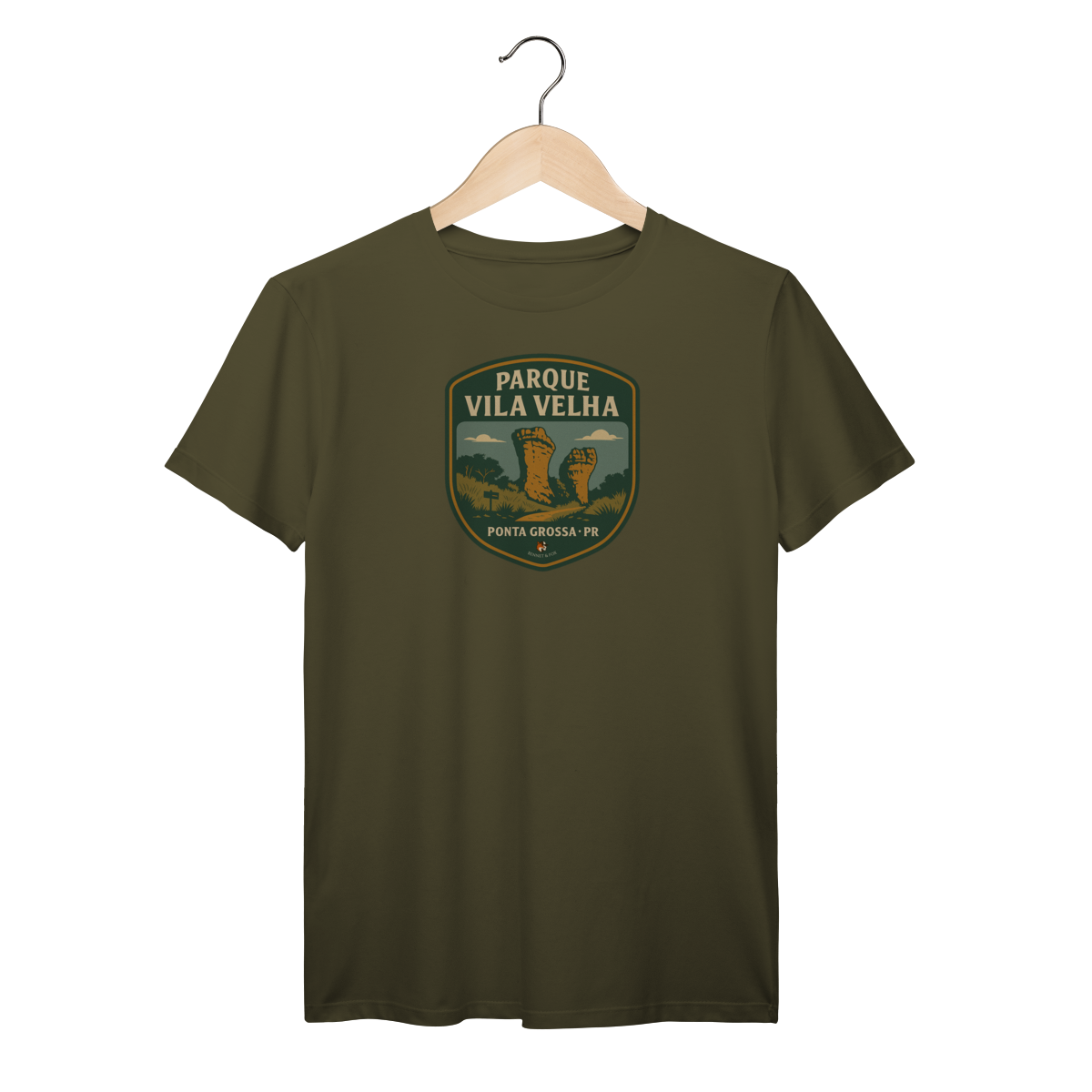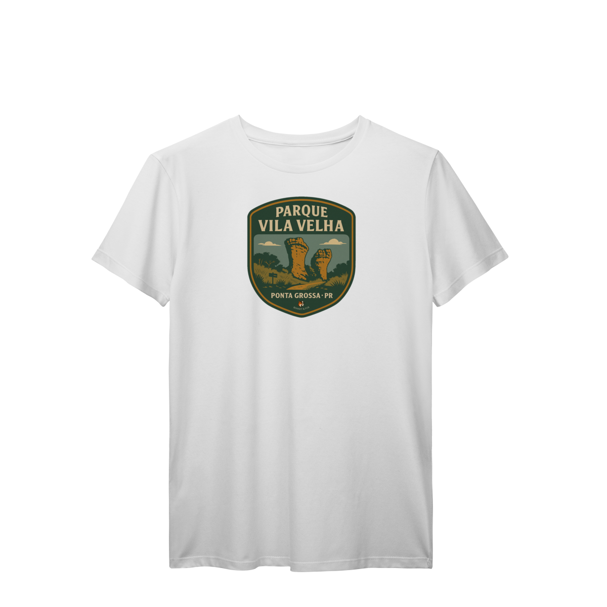 Se você busca pela camiseta do Parque Vila Velha em sua versão definitiva, a encontrou. Esta edição Prime masculina da Bennet & Fox é uma homenagem ao monumento geológico de Ponta Grossa, confeccionada em malha premium ultra macia de 100% algodão penteado fio 30.1.