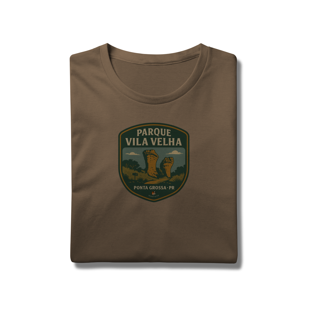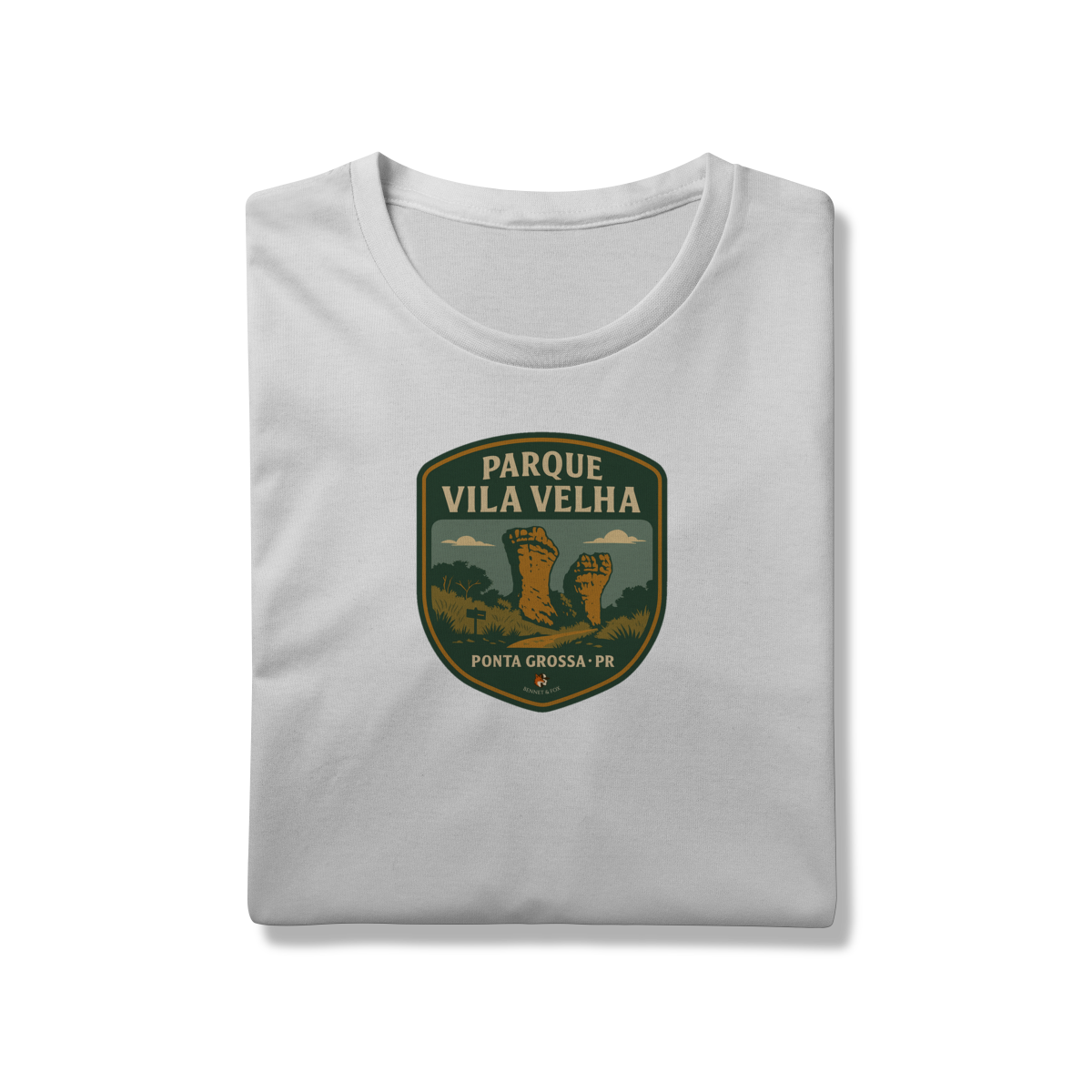 Visitar o Parque Vila Velha é como caminhar por uma cidade esculpida pelo tempo. É procurar o Camelo, a Bota, a Esfinge e se maravilhar com a icônica Taça que desafia a gravidade. Nossa estampa foi criada para capturar essa magia: o mistério das formas, a textura do arenito e a história de milhões de anos gravada na paisagem. É uma peça que veste a admiração pela arte da natureza.