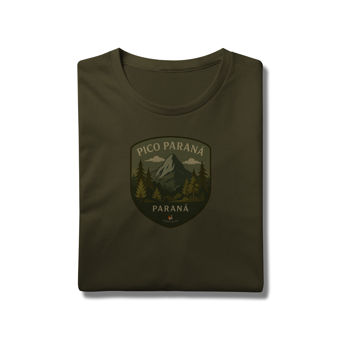 • Design de Conquista: Uma estampa que imortaliza a icônica silhueta do Pico Paraná, destacando a imponência da montanha mais alta do Sul.