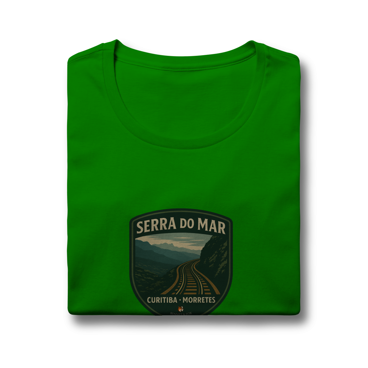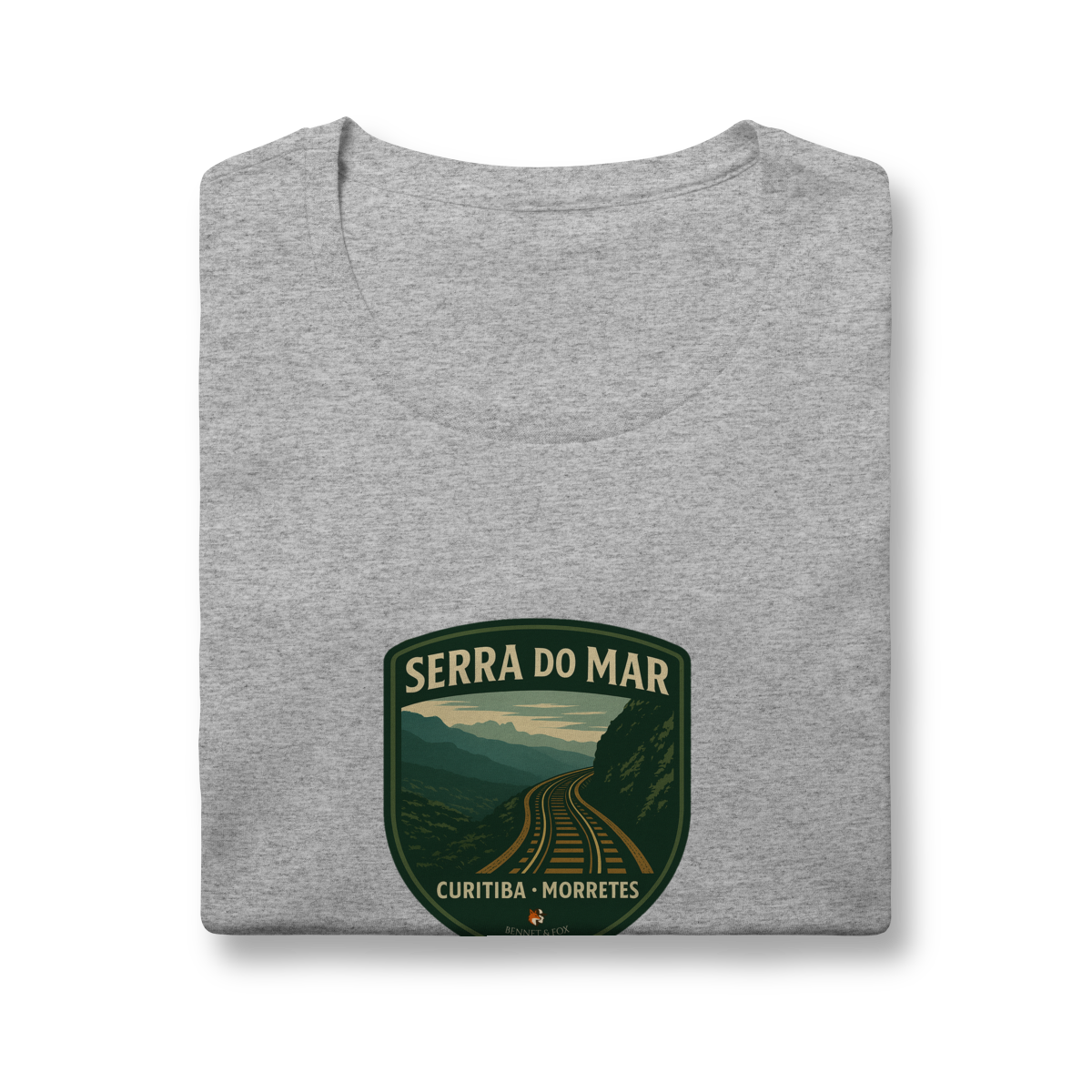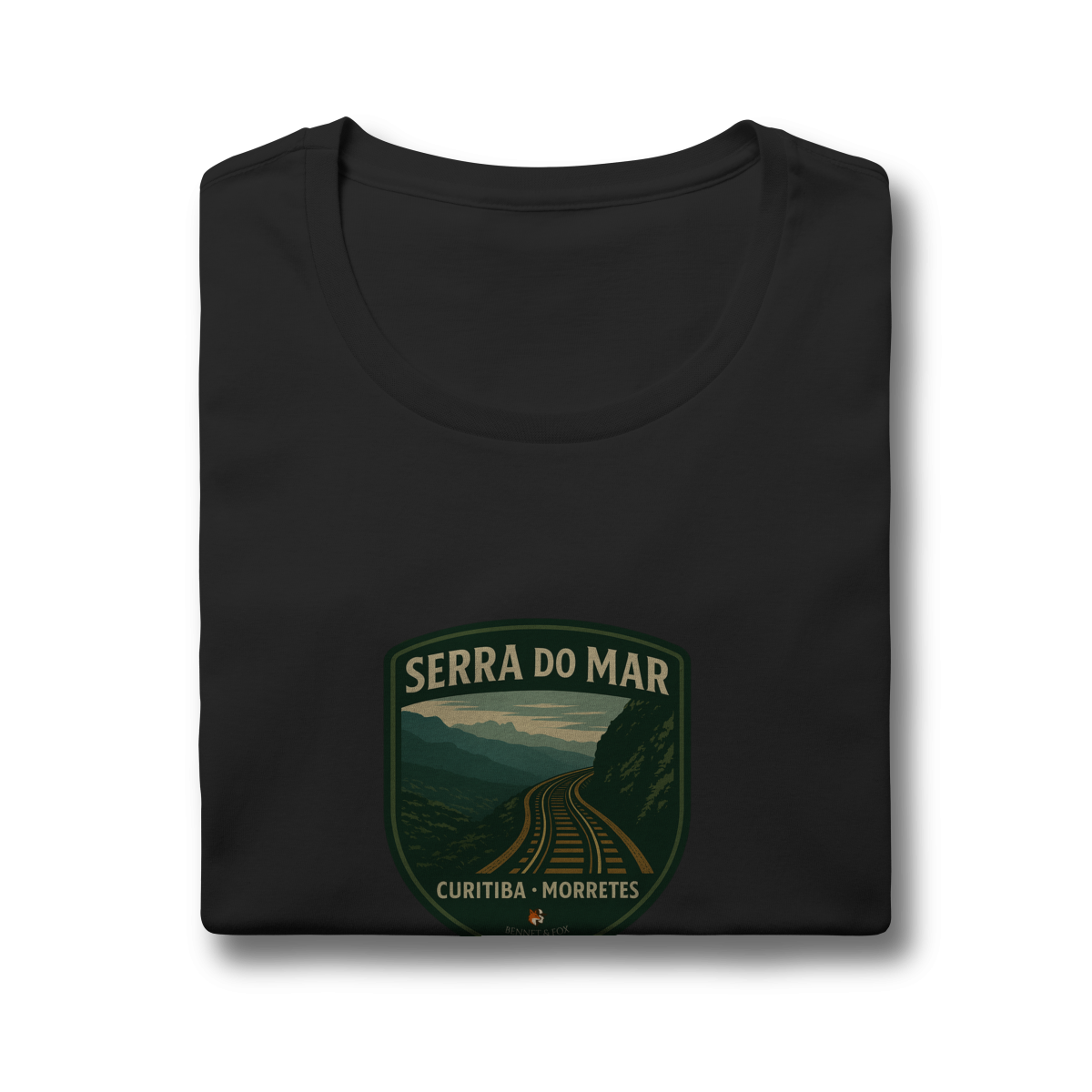 • Design de Emblema: Uma estampa no formato de um "patch" clássico que retrata a ferrovia cortando a Serra do Mar, uma obra-prima da engenharia em meio à Mata Atlântica.