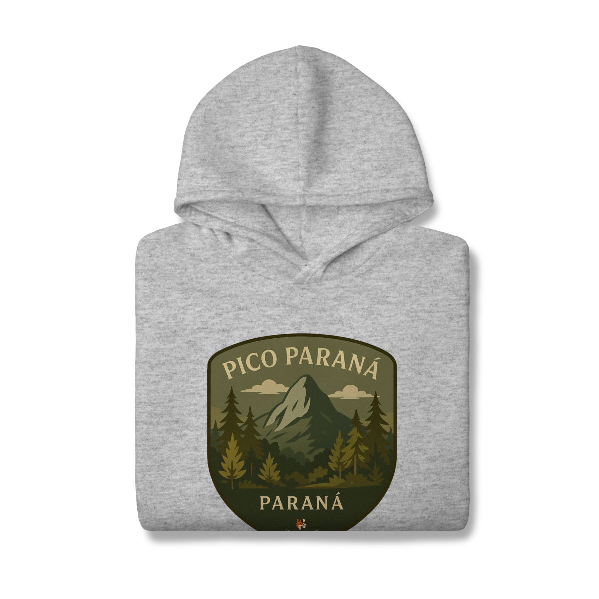 Se você busca pelo moletom do Pico Paraná, encontrou a peça definitiva para o aventureiro. Este moletom Prime unissex, com capuz e bolso canguru, é uma homenagem à montanha mais alta do sul do Brasil. Confeccionado em malha robusta de alta gramatura (310 g/m²) com interior flanelado, ele garante máximo aquecimento e conforto.